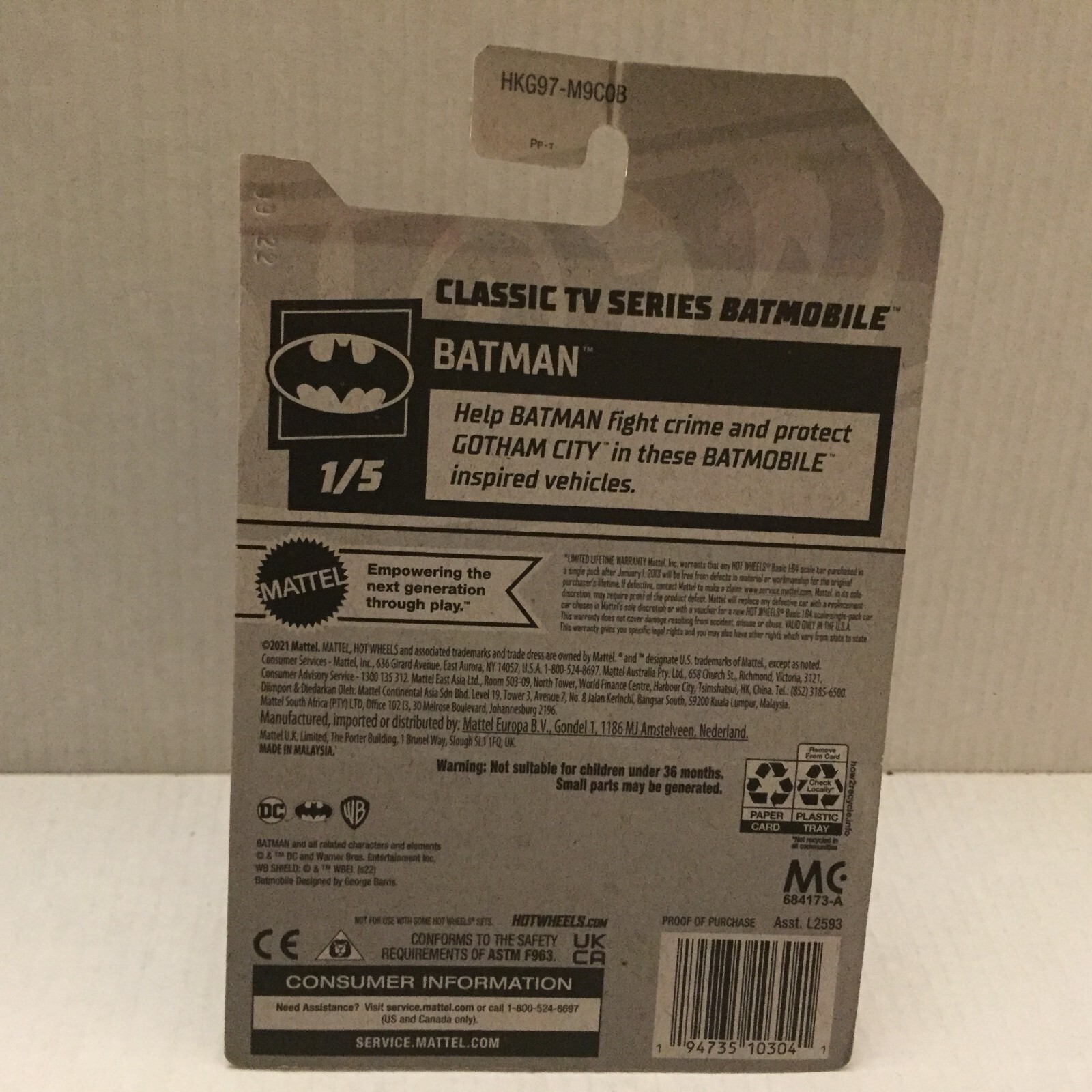 NEW Hot Wheels DC Batman Classic TV Series Batmobile 1/5. New, never opened from package and never played with. Header card is a little dinged up but car is perfect. Will ship in protective bubble wrap envelope. 1 business day of handling and 3-5 business days of shipping. Tracking included with shipments and you will get within a week of purchase. Thank you for your Interest in this Item!