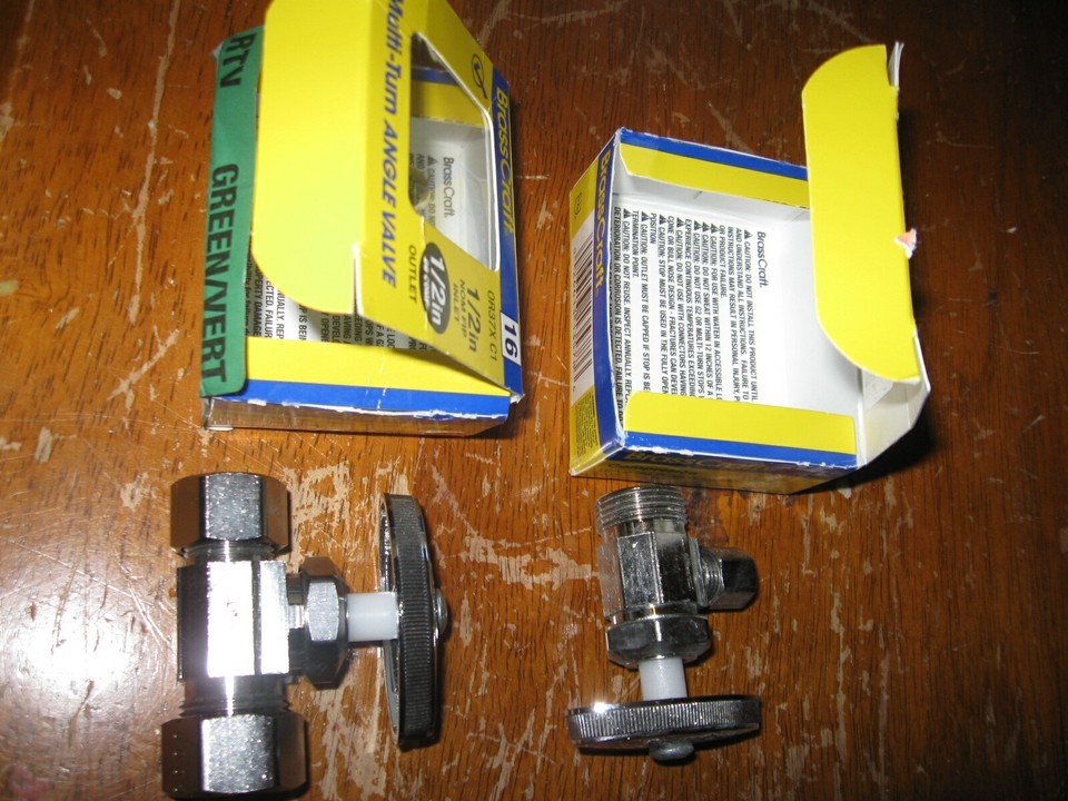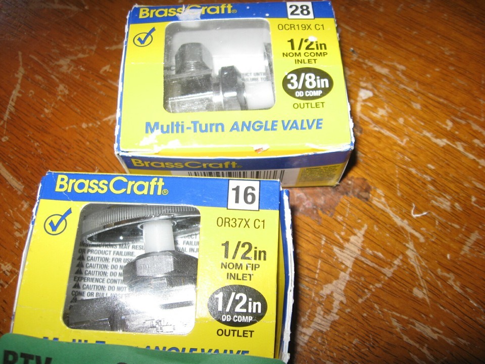 - NEW LOT of 2 Brasscraft Angle Valve 1/2" FIP Inlet x 1/2 OD 3/8" OD OR37X OCR19X