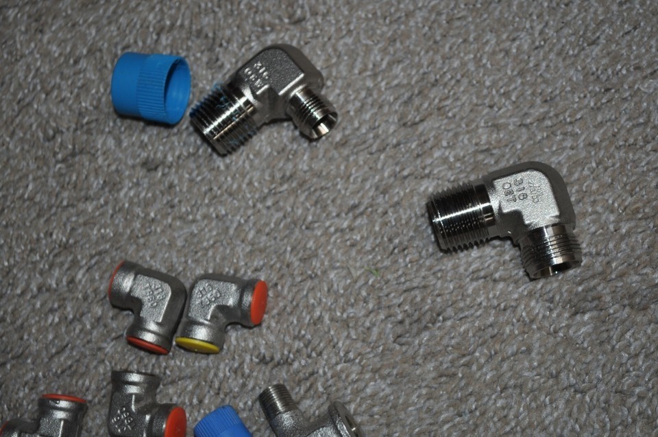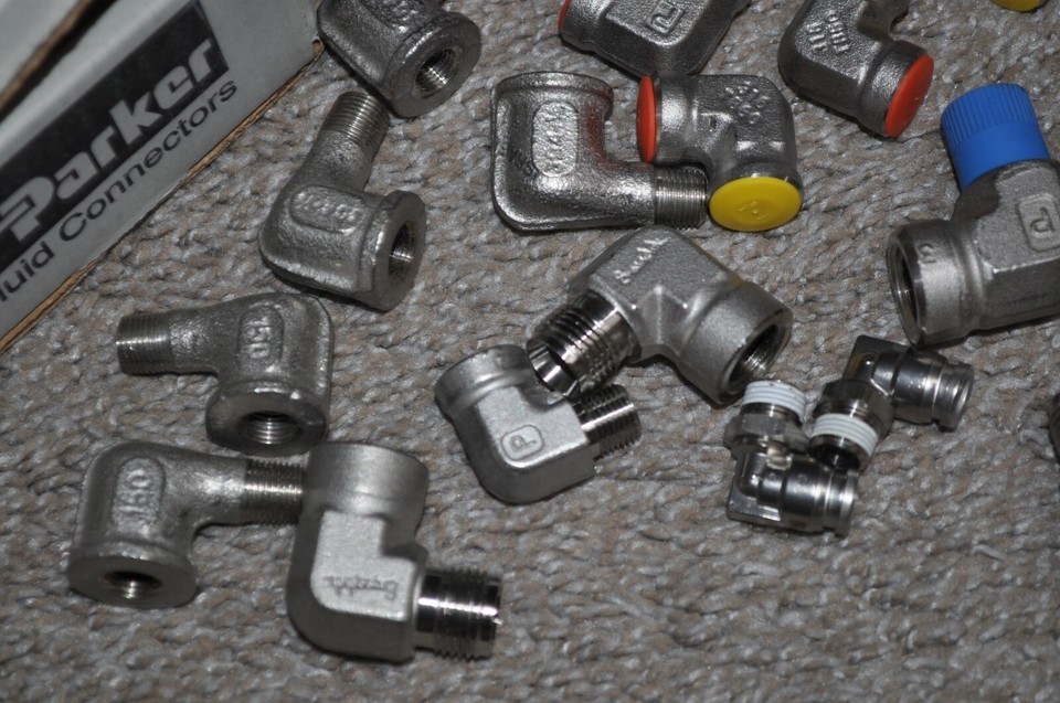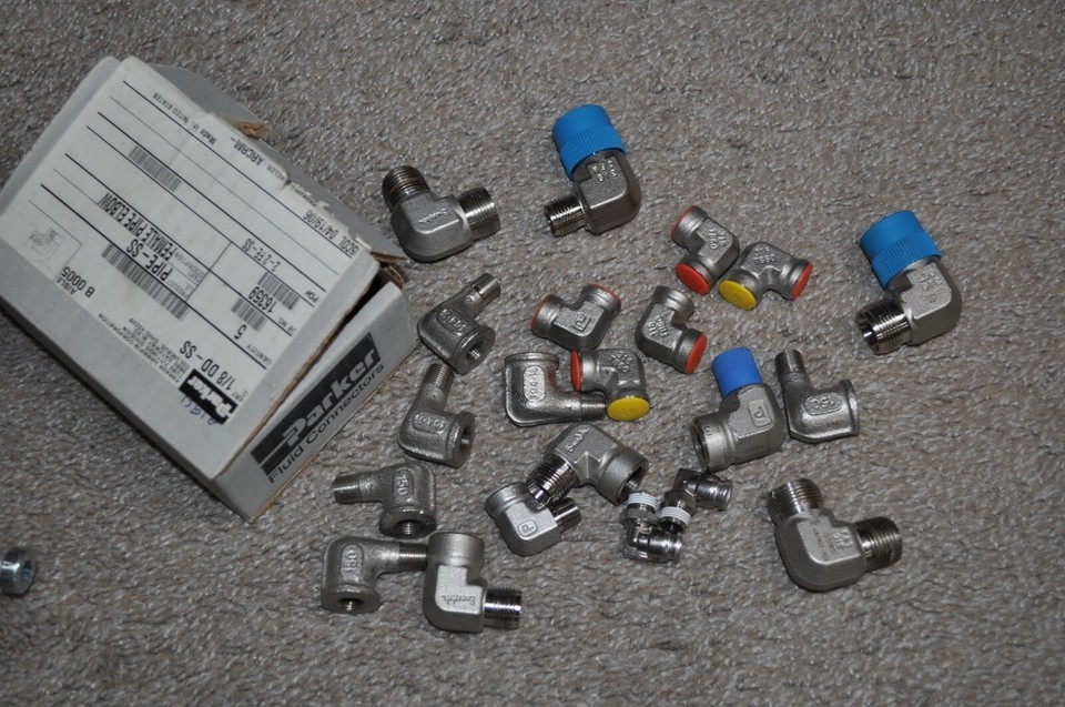 I got these at a factory overstock sale. There is a big variety of elbows here. All I know is that you get 5 of the 1/8 DD-SS Parker's. There are some that are male on one side and female on the other. There are some that are Swagelok and a few may be used. Most are new.