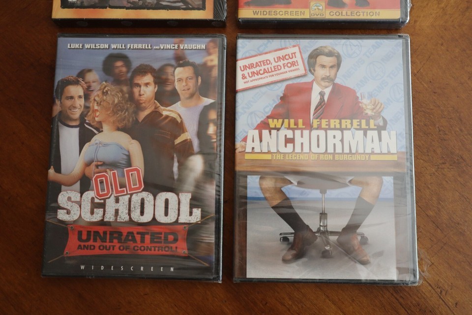 All Movies are still sealed and new but the packaging on anchorman is coming apart.