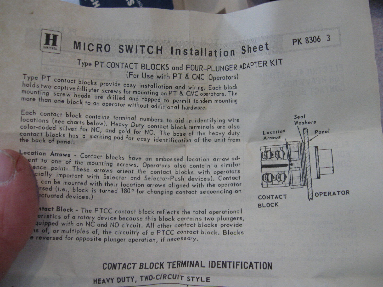 - NEW Micro Switch Honeywell Contact Block 1 Plunger switch # 1NC-1NO PLGR PTCH