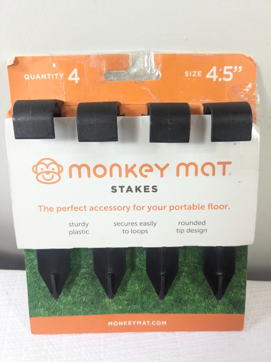NEW Monkey Mat Stakes for portable floor picnic blanket 4pk 4.5" SHARK TANK New. Package condition as shown.