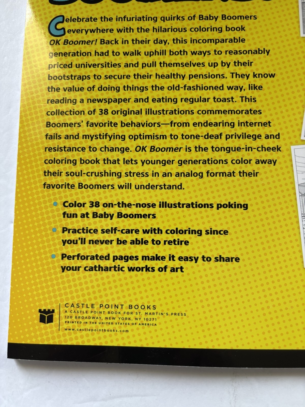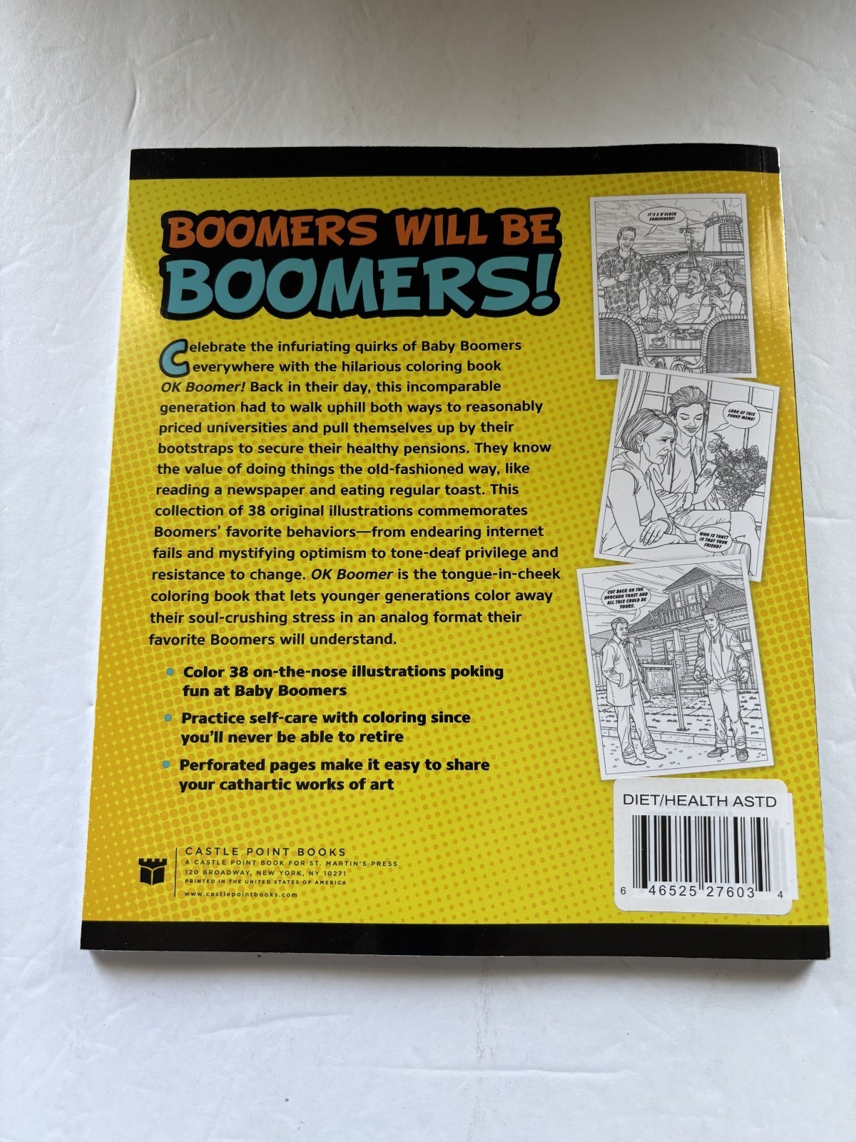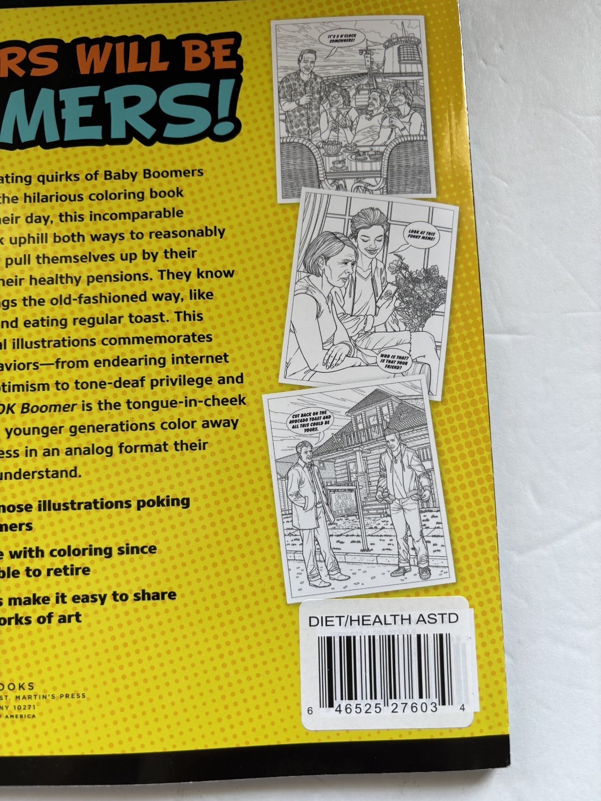 NEW OK Boomer Funny Illustration Soft Cover-Book. Funny Book about Boomers. Quite heavy book, will ship as Media Mail. 1 business day of handling and 2-8 business days of shipping. Tracking included with media Mail shipment. Thank you for your Interest in this Item!