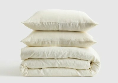 NEW! Quince European 100% Linen Duvet Cover 3PC Set, Ivory, Full/Queen, $150