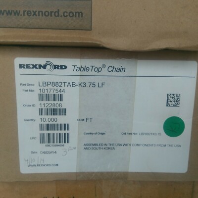 NEW Rexnord Side Flexing Tabletop Conveyor Chain 882 Tab Series pn# LBP-882-TAB-K3.75 This is good to go set of chain for your factory needs. / 10 ft long / Let me know if you have questions and I will help you out! from manufacture - LF882TAB LBP 3.75 Inch Wide Low Backline Pressure TableTop Chain Molded In Tan Low Friction Material And Assembled With Stainless Steel Pins. 1.5 in pitch LF882TAB LBP 3.75 Inch Wide Low Backline Pressure TableTop Chain Molded In Tan Low Friction Material And Assembled With Stainless Steel Pins I Have LOTS of other Rexnord Chain. I will give you a deal on multiples!! FREE USA SHIP // Will ship international.