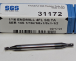 - NEW SGS 31172 Square End Mill: 1/16" Dia 1/8" LOC 1/8" Shank 1-1/2" OAL 4 Flute