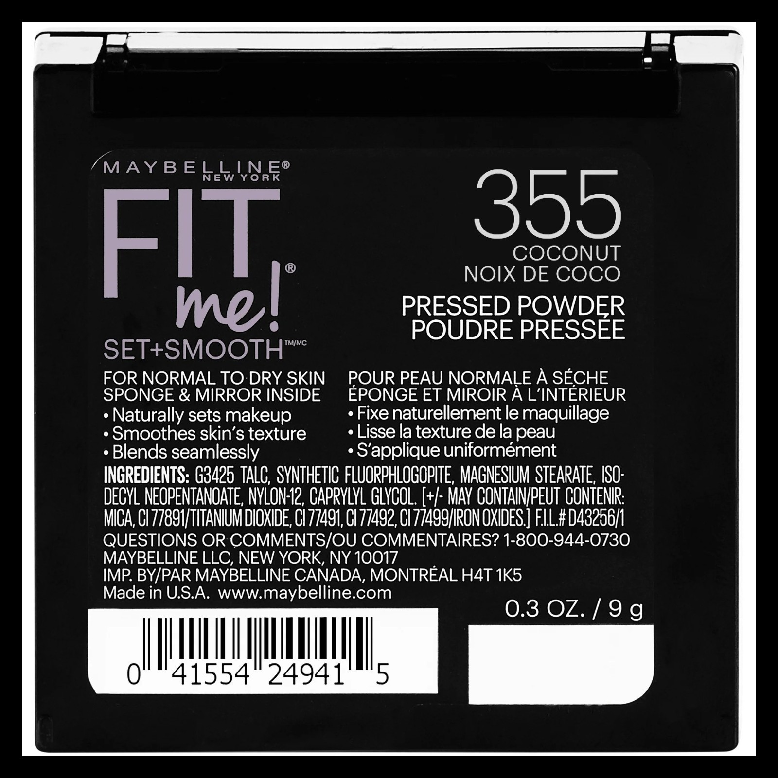 Fit Me! Matte + Poreless Powder from Maybelline New York goes beyond skin tone matching to fit the unique texture issues of normal to oily skin for the ultimate natural skin fit. Fit Me Matte + Poreless Face Powder provides long-lasting, mattifying, shine control and up to 12HR wear for a natural, poreless-looking finish. Buildable coverage. Does not clog pores. Oil-free. Ingredients: Talc, Perlite, Triisostearin, Phenyl Trimethicone, Magnesium Stearate, Caprylyl Glycol, +, - May Contain: CI 77891, CI 77491, CI 77492, CI 77499 (Iron Oxides)