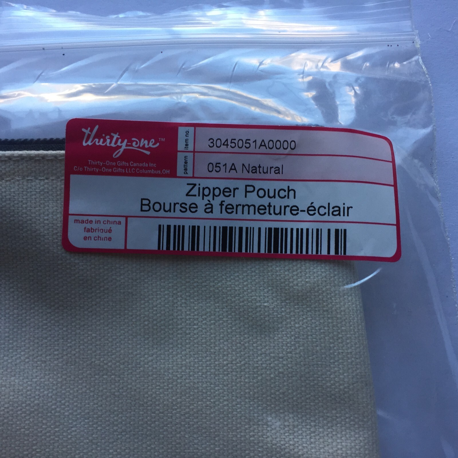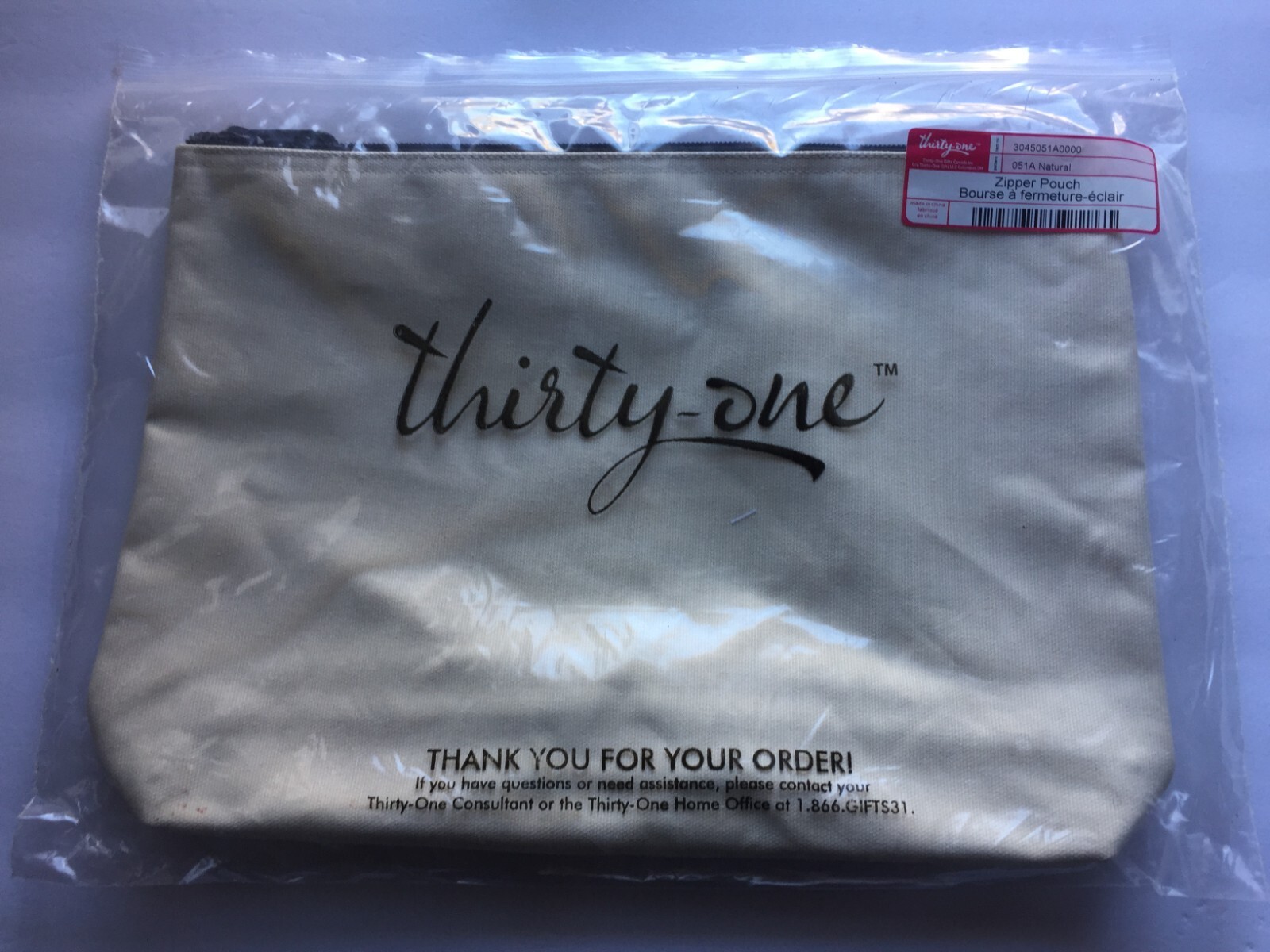 NEW Thirty-One Natural 12'' x 8'' Zipper Pouch. Clean, and good. Will ship in Mailer envelope. 1 business day of handling and 3-5 business days of shipping. Tracking included with shipments and you will get within a week of purchase. Thank you for your Interest in this Item!