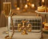 Champagne Croc Embossed Eleanor Small Convertible Shoulder Bag/Cross Body Bag by Tory Burch.