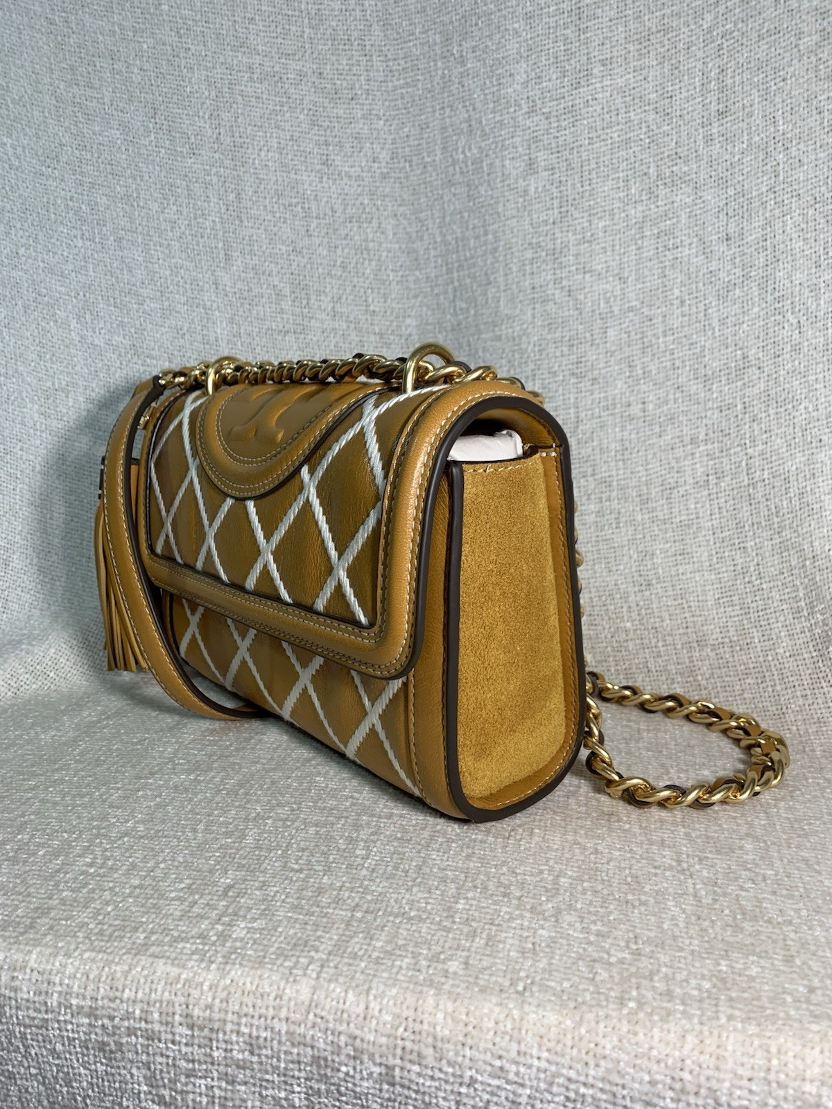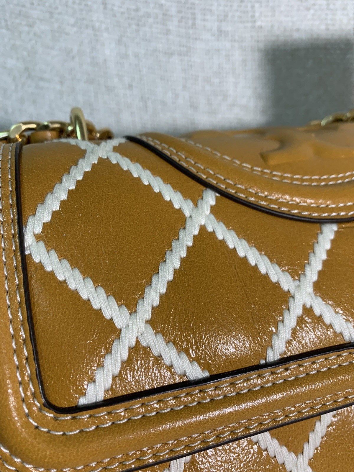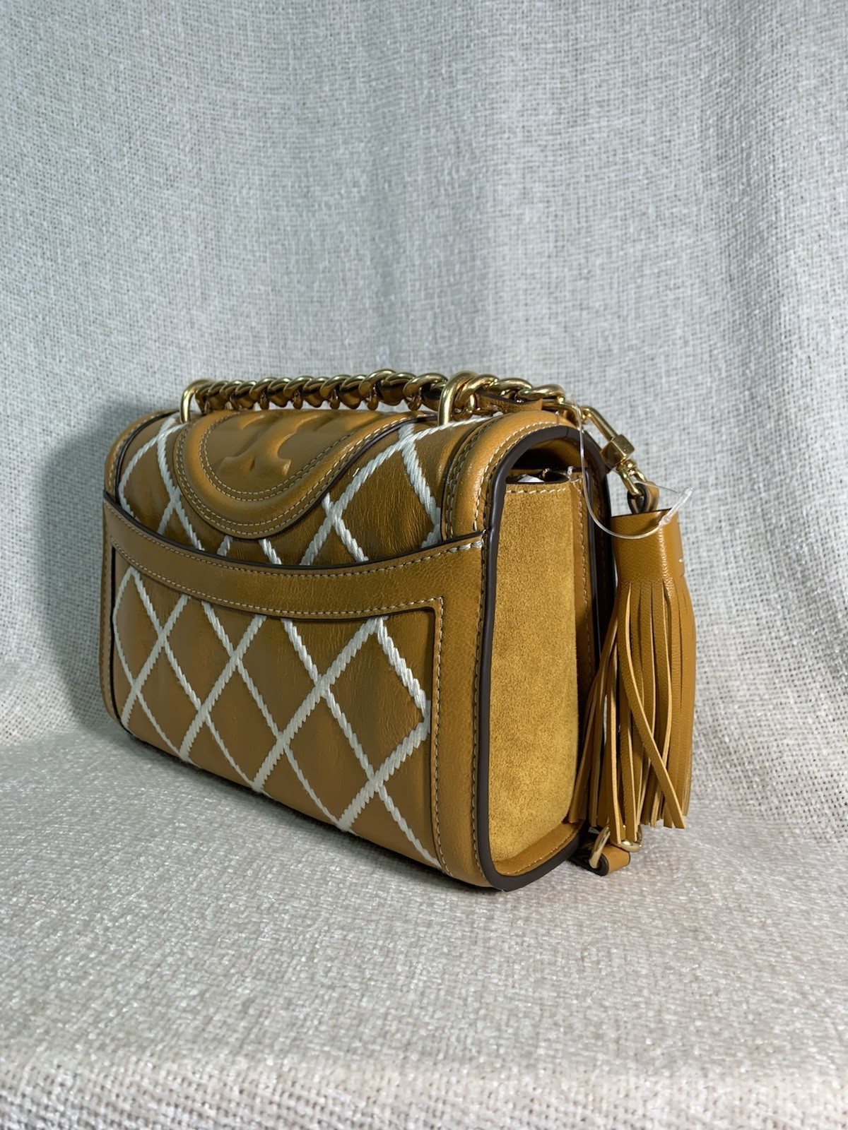 - NEW Tory Burch Fleming Pop Quilt Tan Leather Small Crossbody/Shoulder Bag AUTH