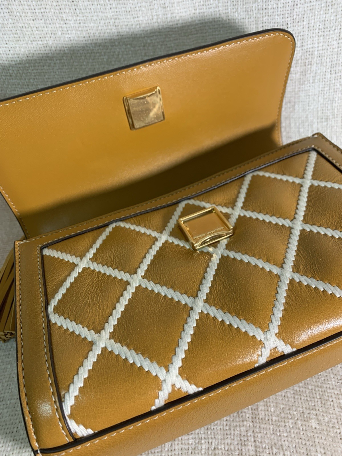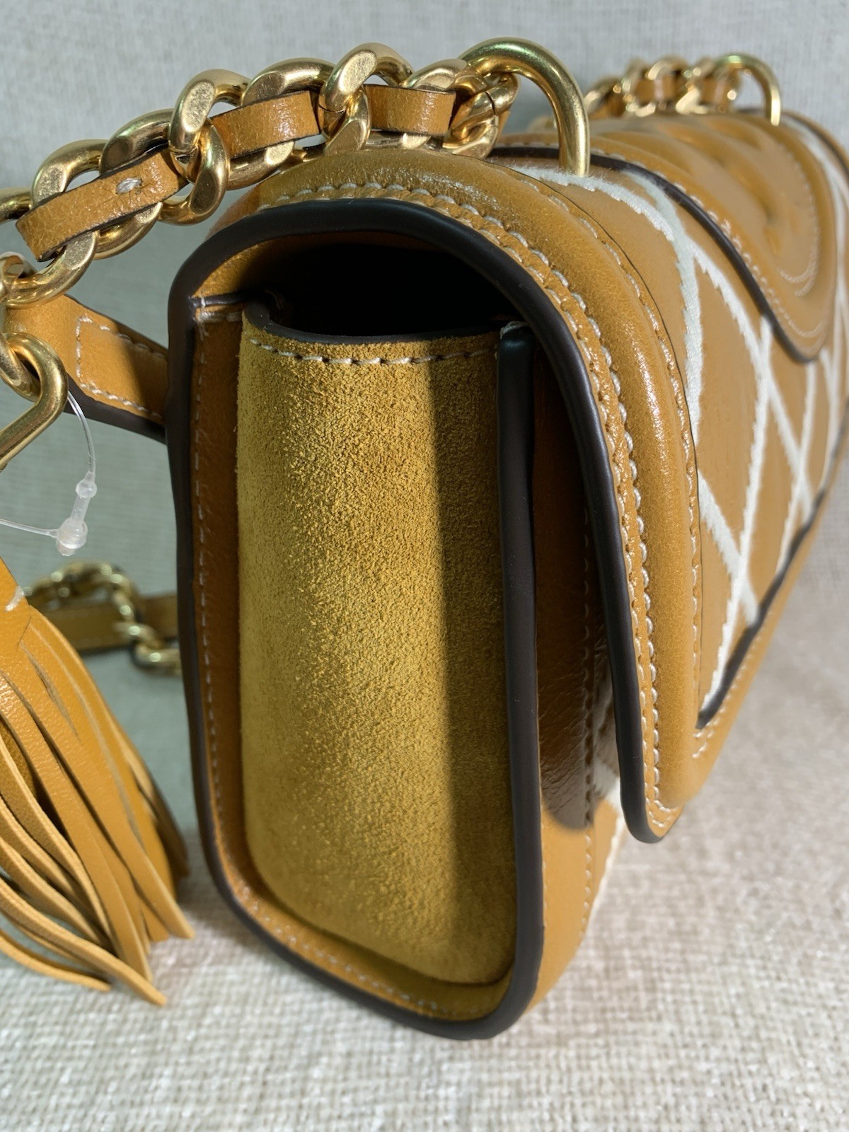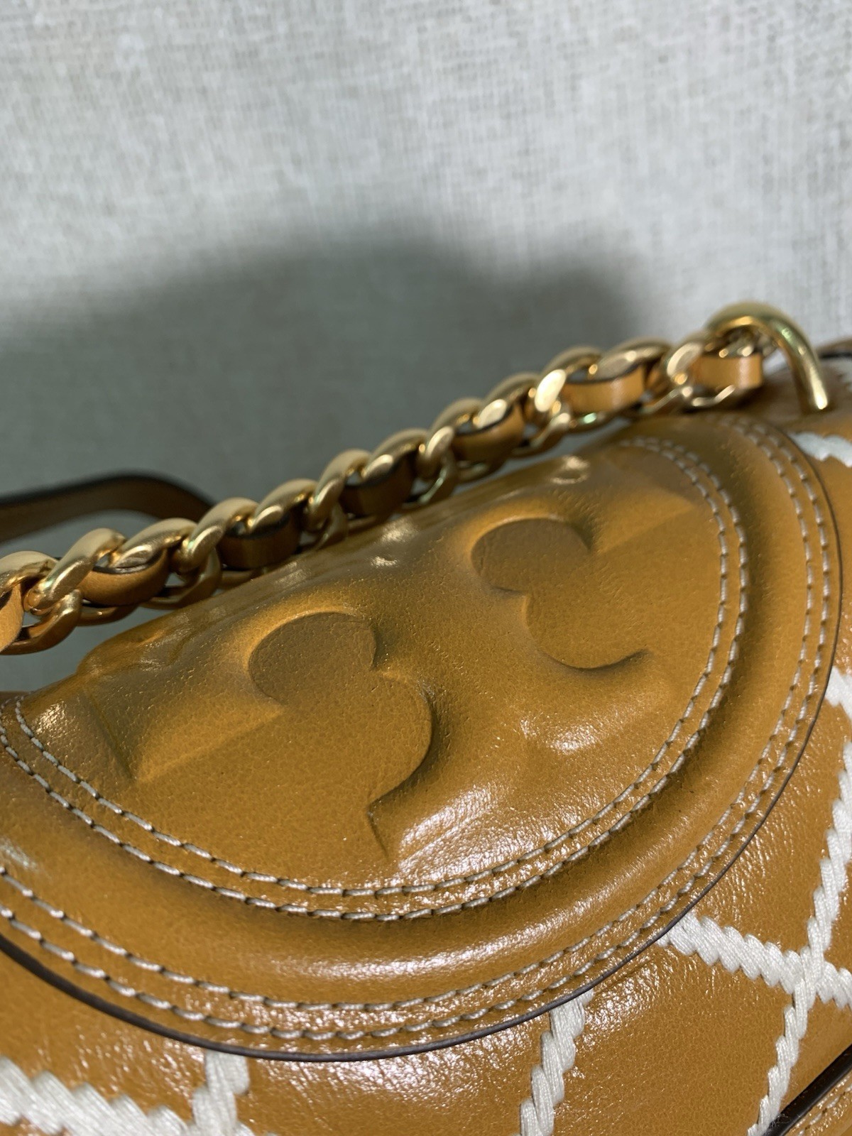 - NEW Tory Burch Fleming Pop Quilt Tan Leather Small Crossbody/Shoulder Bag AUTH