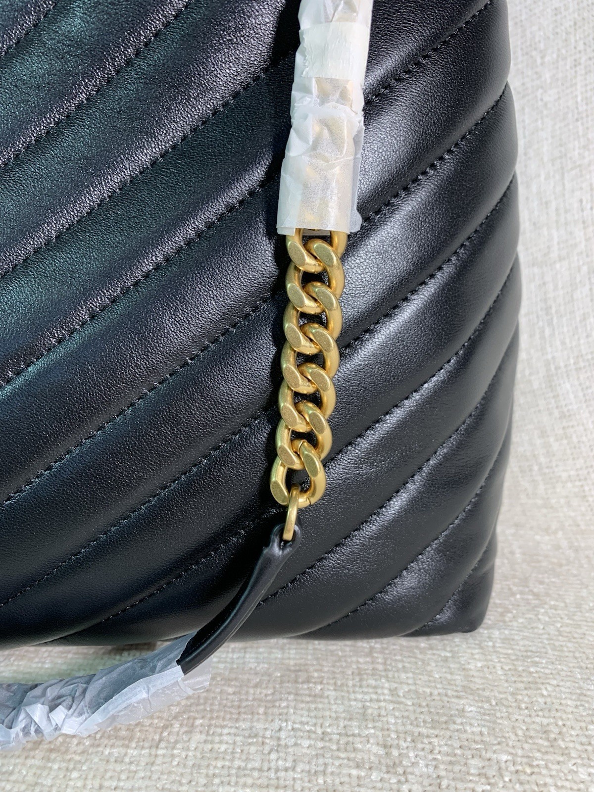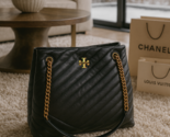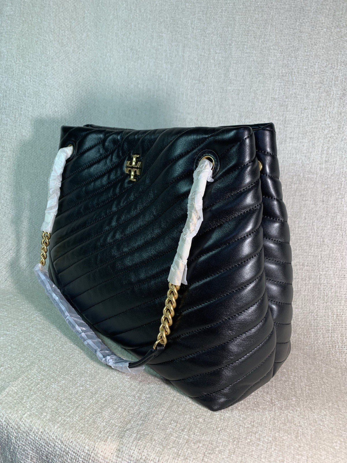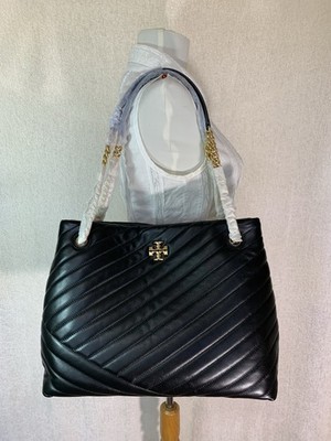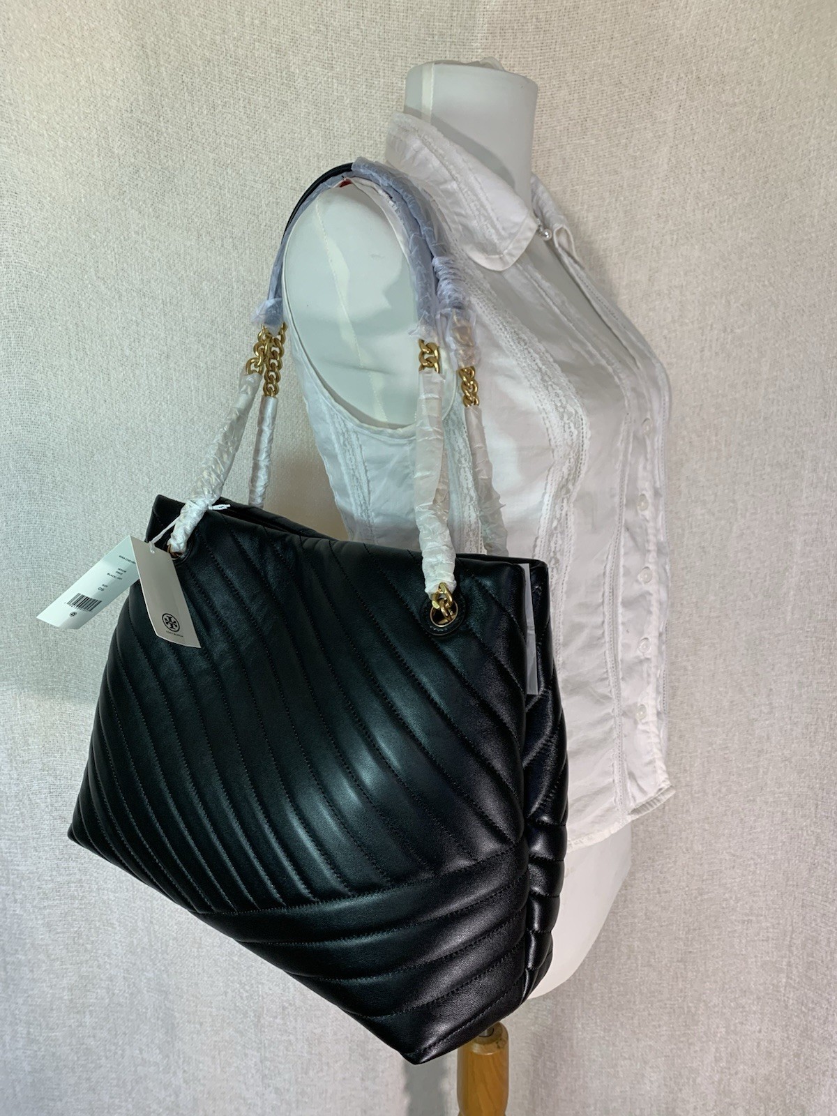 - NEW Tory Burch Kira Chevron Black Quilted Leather Chain Strap Shopper Tote Bag