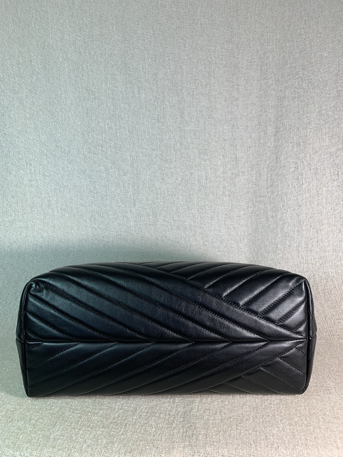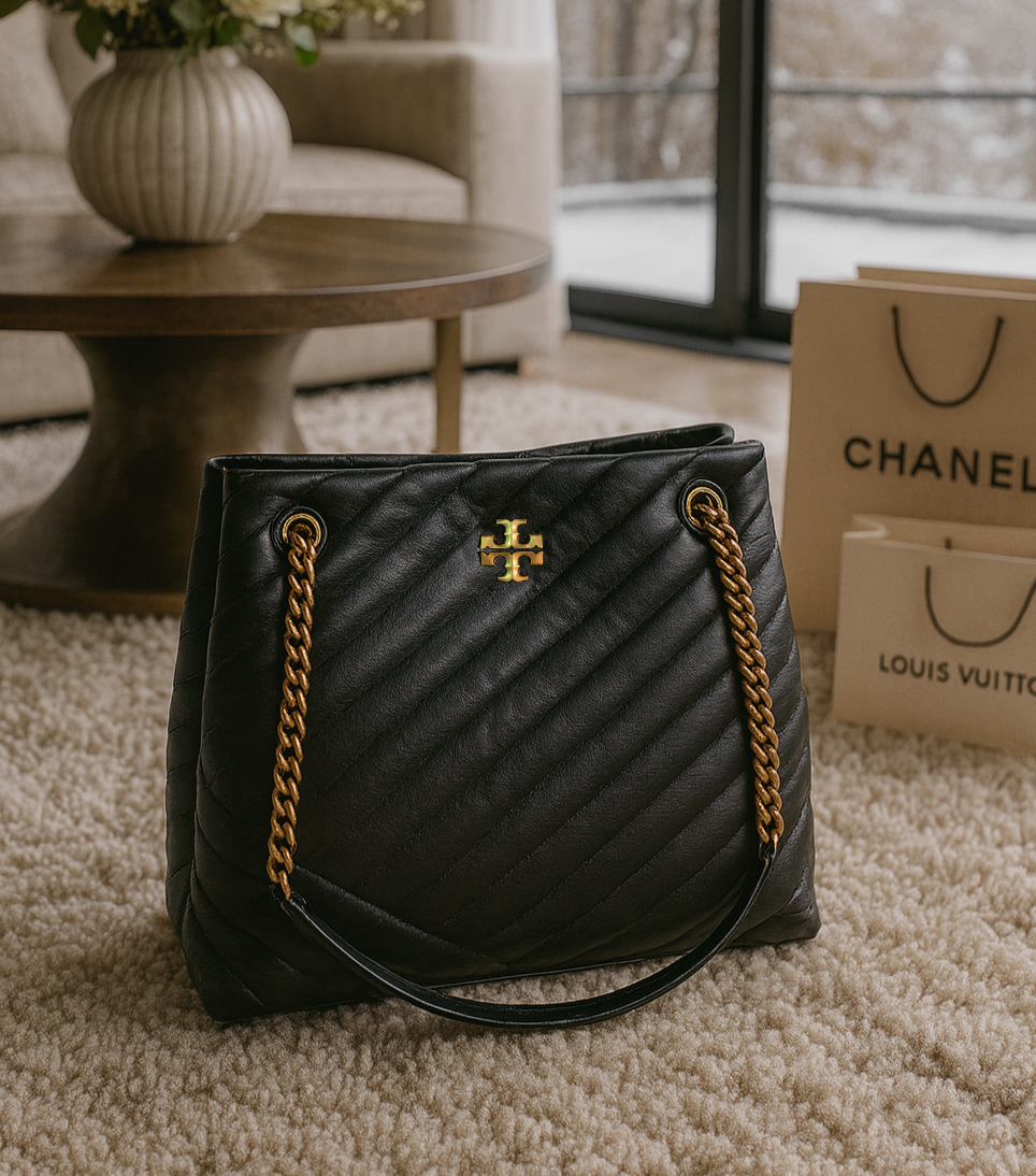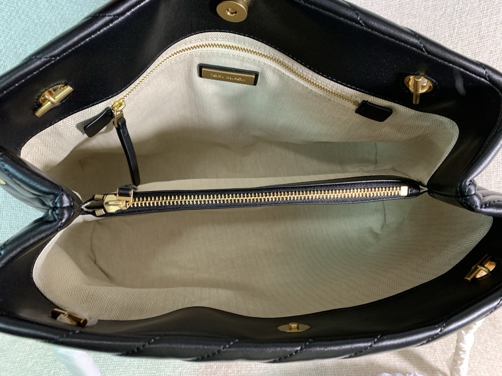 - NEW Tory Burch Kira Chevron Black Quilted Leather Chain Strap Shopper Tote Bag
