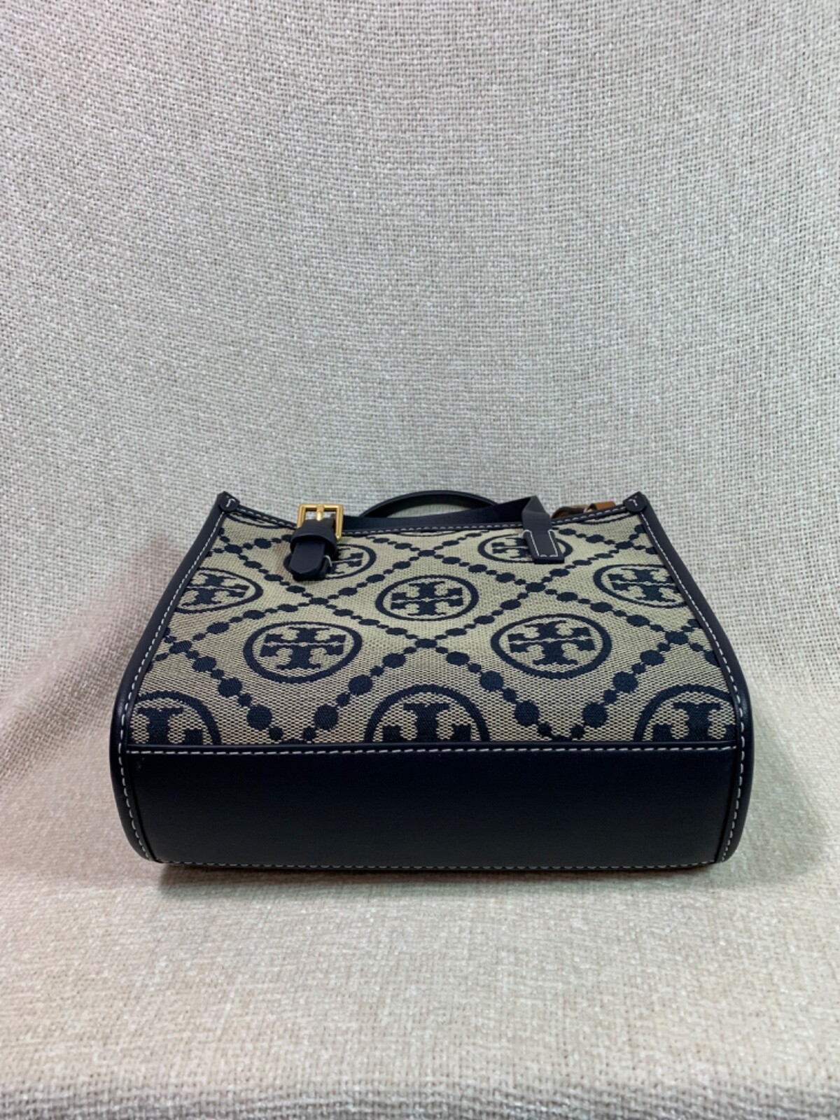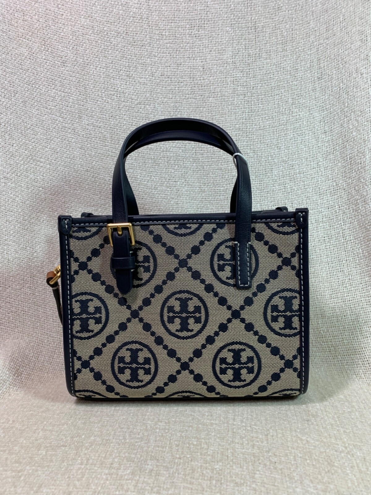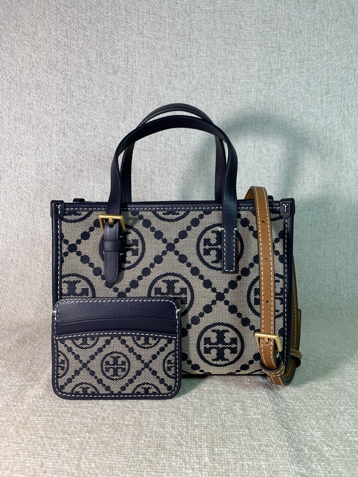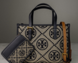 - NEW Tory Burch MINI Tory Navy T Monogram Jacquard Tote + Card Case $526