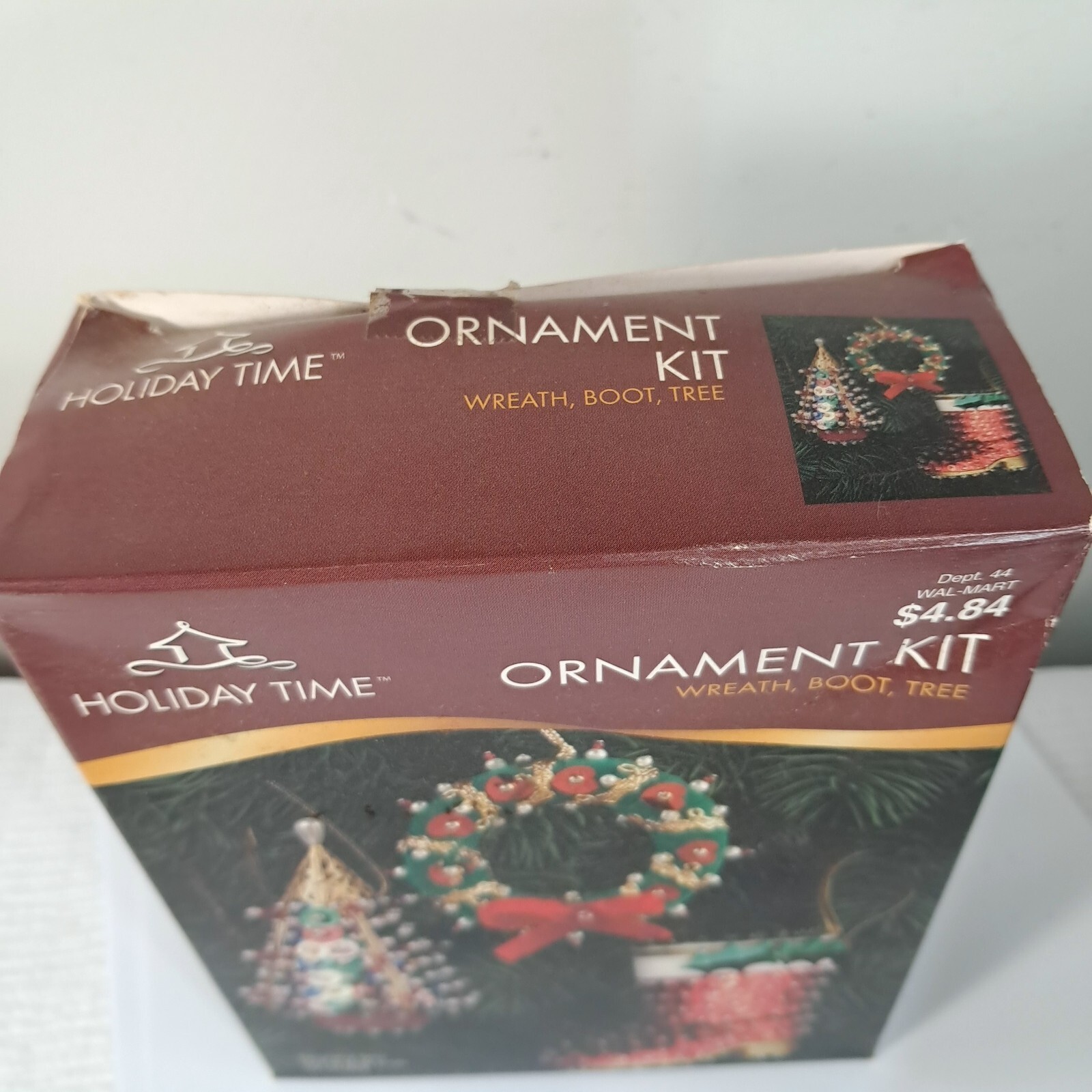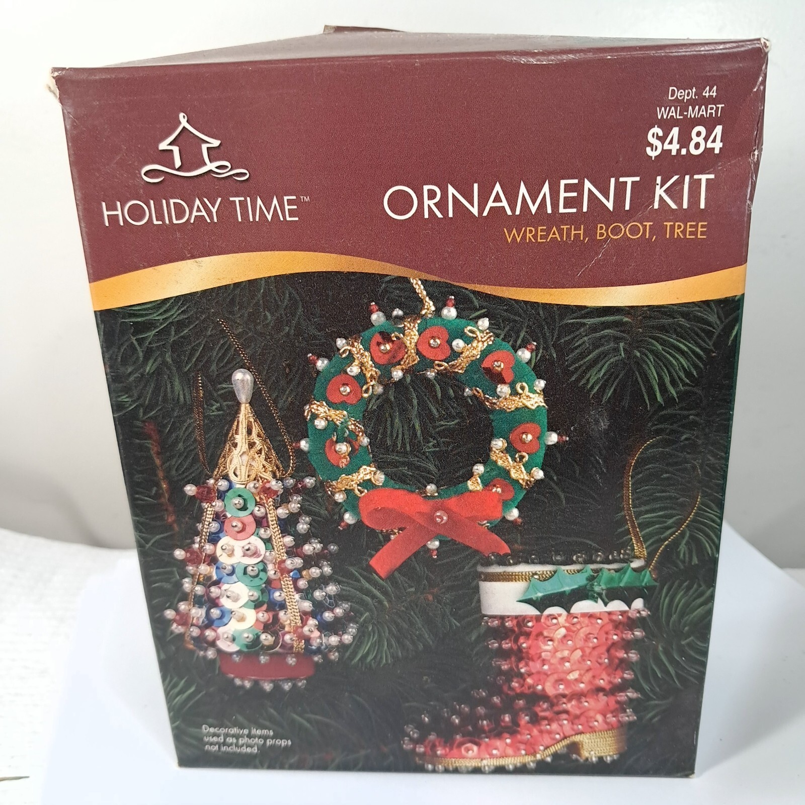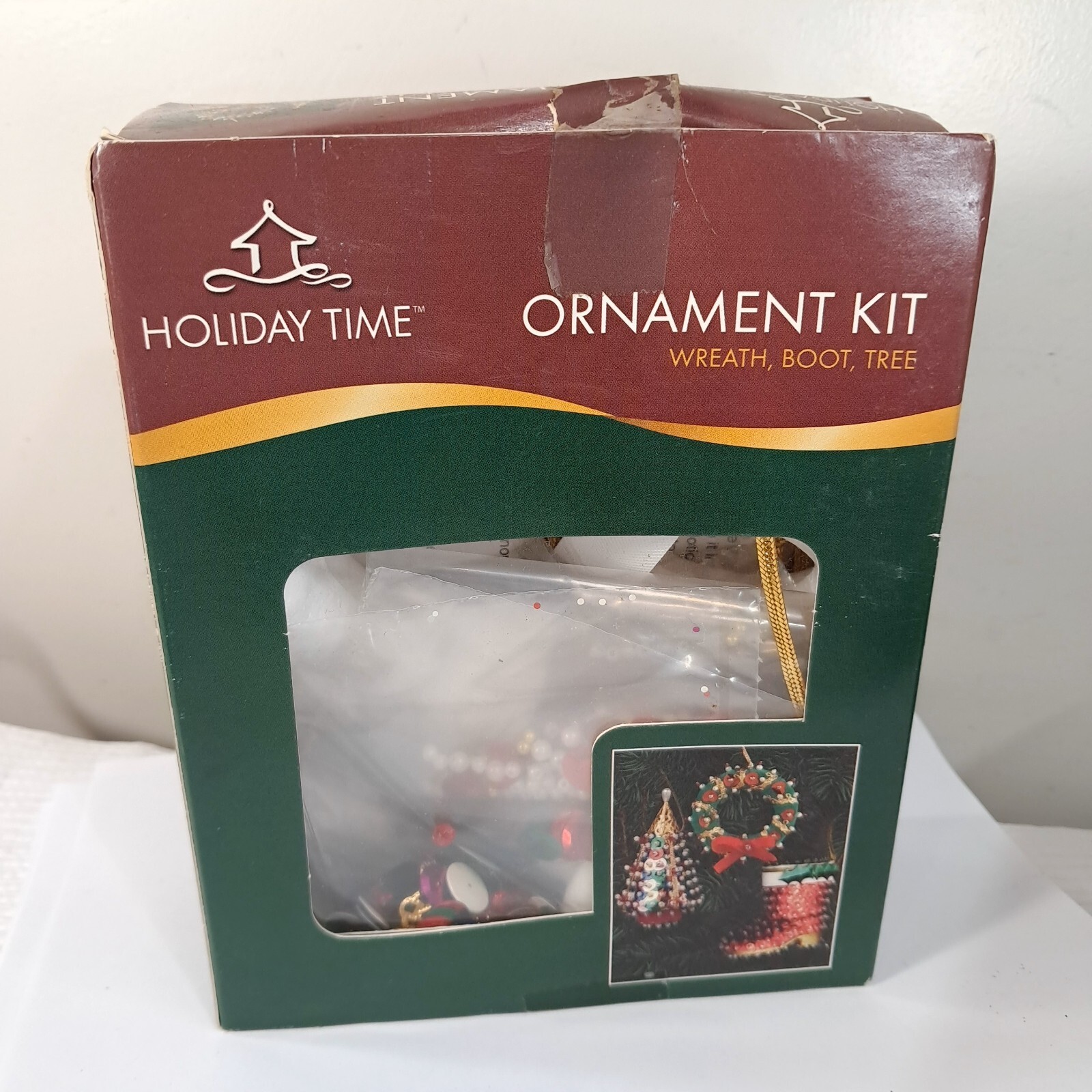 Vintage Holiday Time ornament kit Wreath, Boot, Tree sequins Christmas set Never used, box condition as shown.