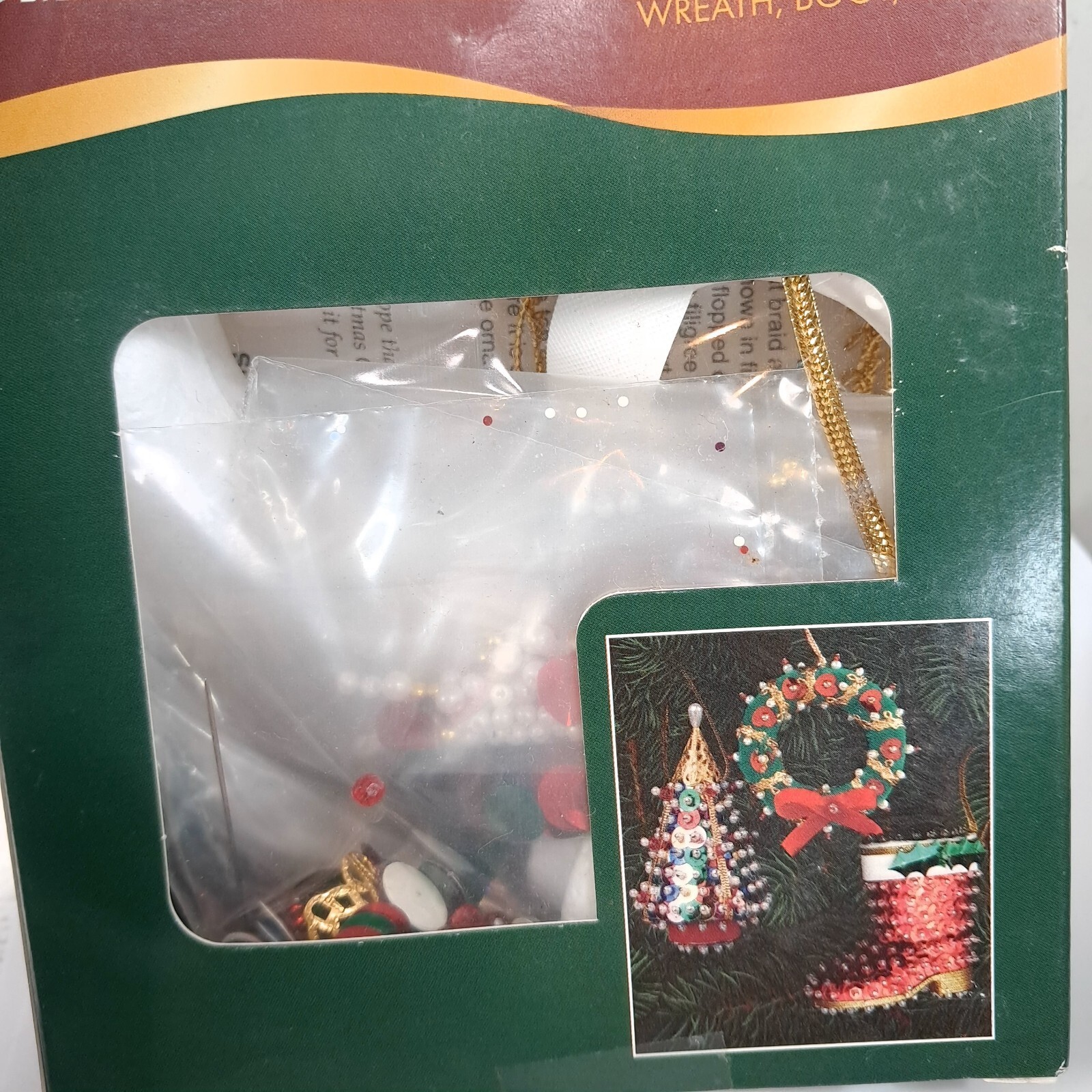 NEW Vintage Holiday Time ornament kit Wreath, Boot, Tree sequins Christmas set