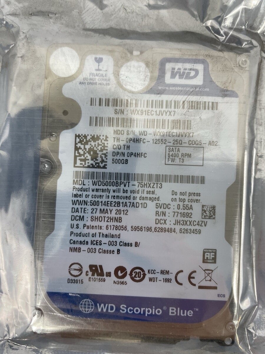 WD Blue, 500GB Hard Drive, Brand New. Bought it to replace a bad hard drive but never used it. Package has never been opened