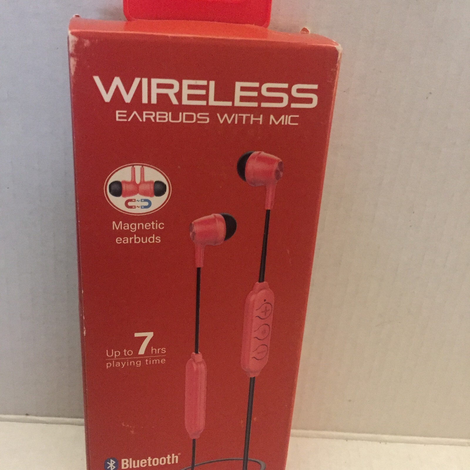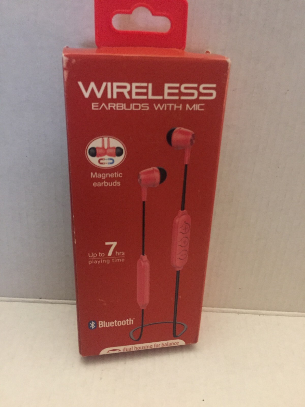 NEW Wireless Bluetooth Red Earbuds with Mic New and still in original package. Never used or worn. Will ship in protective bubble envelope. 1 business day of handling and 3-5 business days of shipping. Tracking included and you will get within a week of purchase. Thank you for your interest in this item!