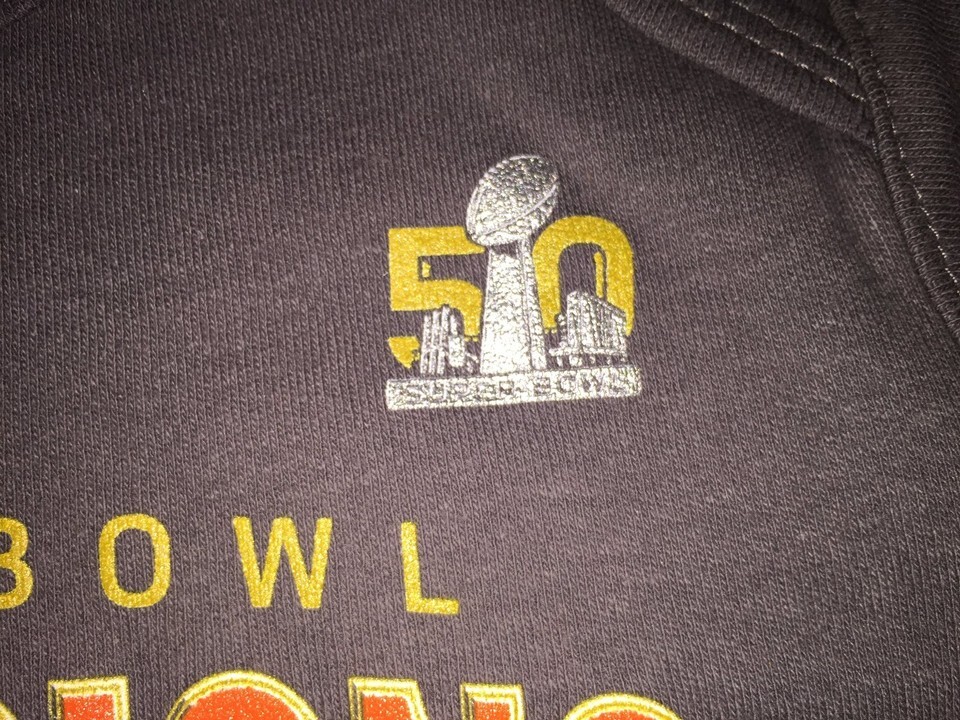 I went to the Super Bowl and bought everything in the Levis Stadium Fan shop.. I picked up every size . How about that Von Miller !! Let your Rivals know who the World Champions are by putting Babys in this One piece Super Bowl Champions One piece Suit . GO BRONCOS !!