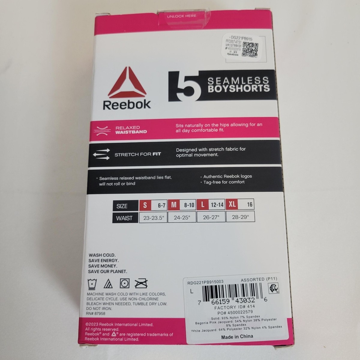 - NIB Reebok Girls Seamless 5 Pairs Multi Color Boyshort Panties Size Large 12-14