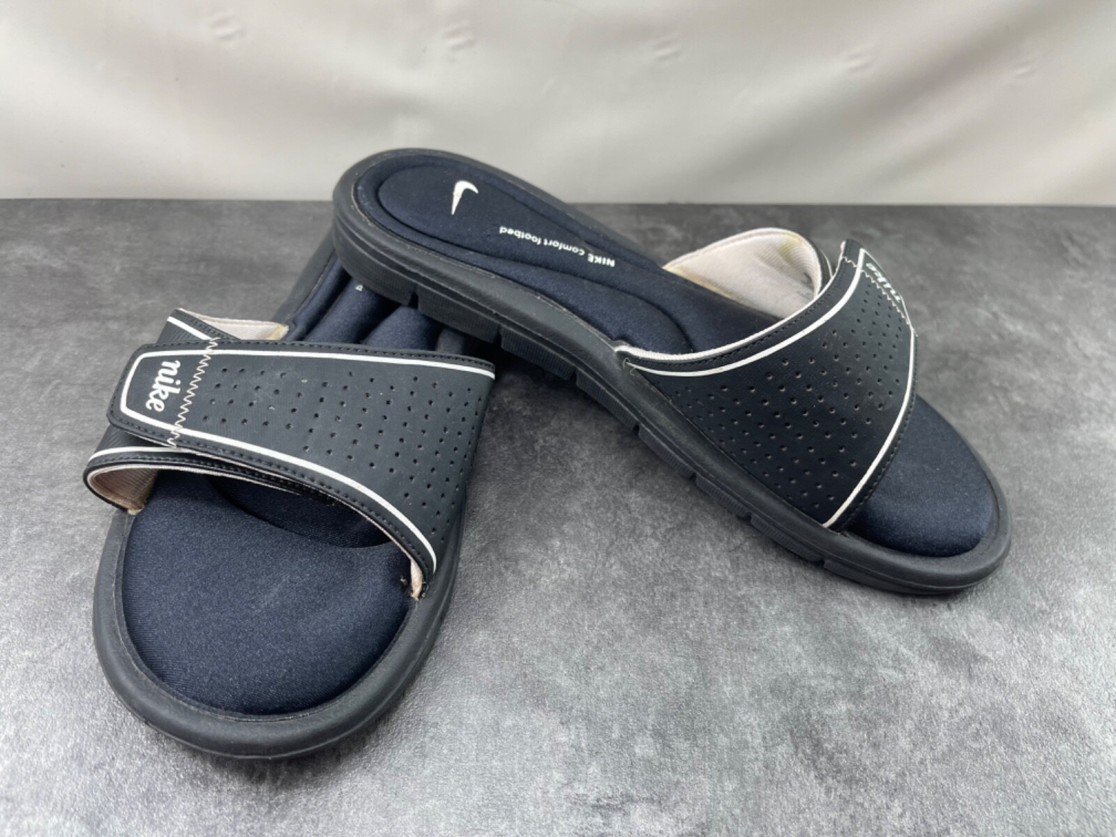 NIKE Slides Sandals Women 9 M Ultra Shoes Black White Cushion Slip On Comfort