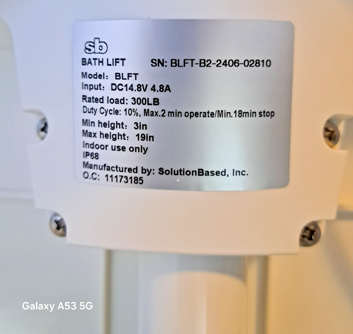 NIOB BathLyft Bathtub Lift Chair BLFT-B2-2406-02810 Mobility Safety Aid NIOB