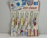Vintage NOS (New Old Stock) Lucky Jay Bee key chains from the 1950s, featuring classic molded puzzle figures with a nostalgic Howdy Doody-era aesthetic. Sold individually at $9.99 each. Perfect for collectors of vintage toys, Americana, or keychain memorabilia. Original display card is shown for reference only?message us if interested in purchasing the entire display. Brand: Lucky Jay Bee Type: Puzzle Key Chain Quantity: $9.99 each (sold individually) Era: 1950s Material: Molded plastic with metal chain Condition: New Old Stock (unused, original display wear) Theme: Howdy Doody, Classic Americana, Toy Puzzle Colors/Styles: Assorted figures (select via message if needed) Display Card: For reference; not included unless requested