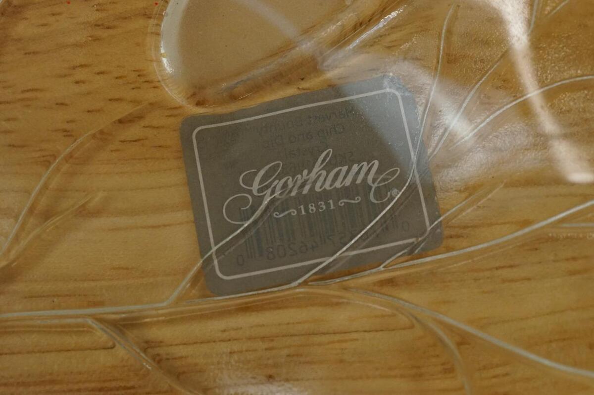 NOS GORHAM Crystal Frosted Acorn Nut Harvest Bounty Chip & Dip Serving Platter