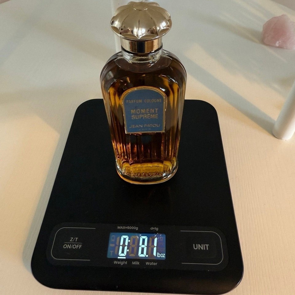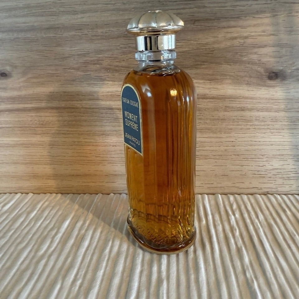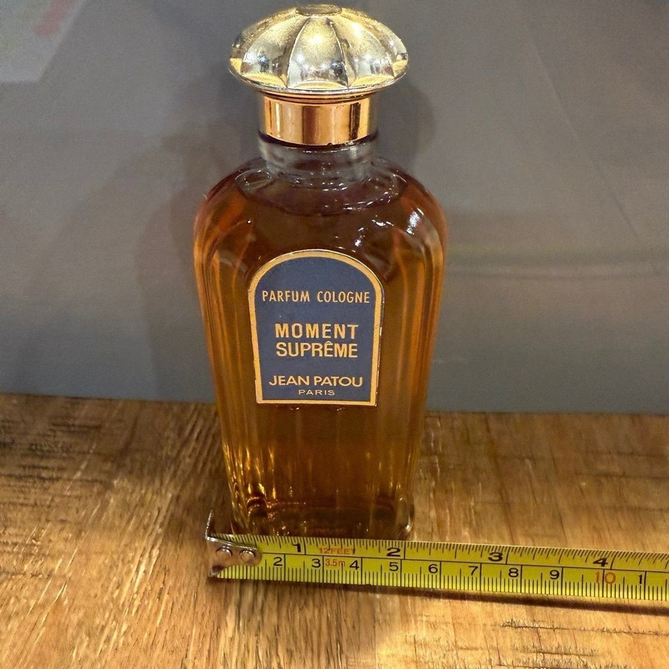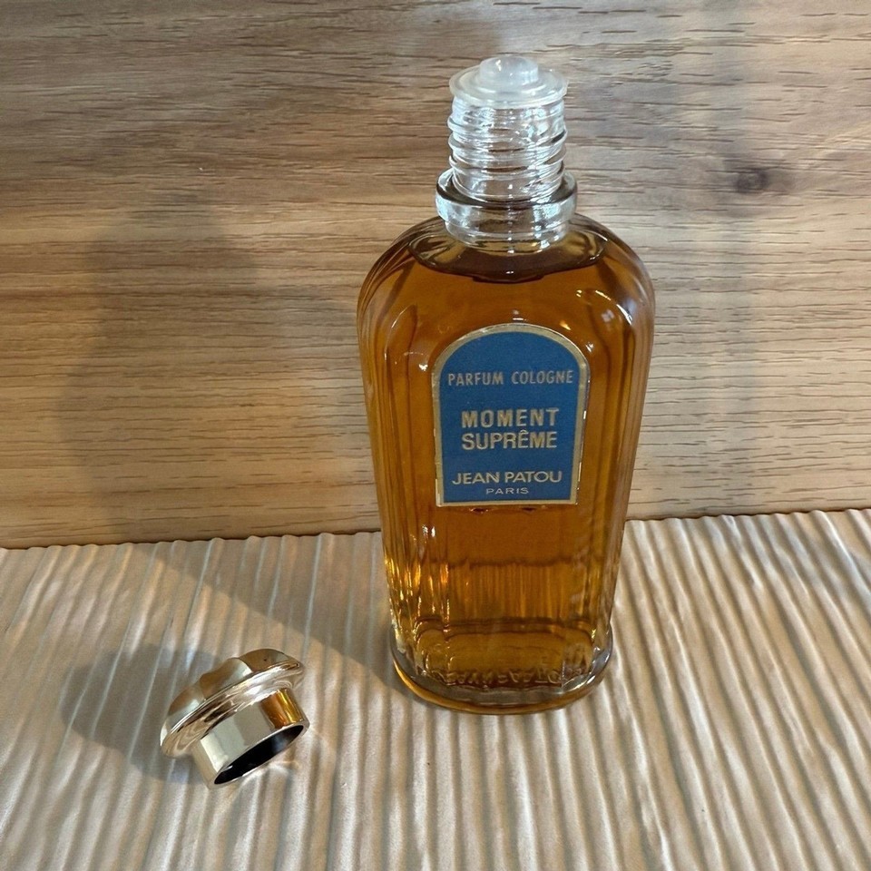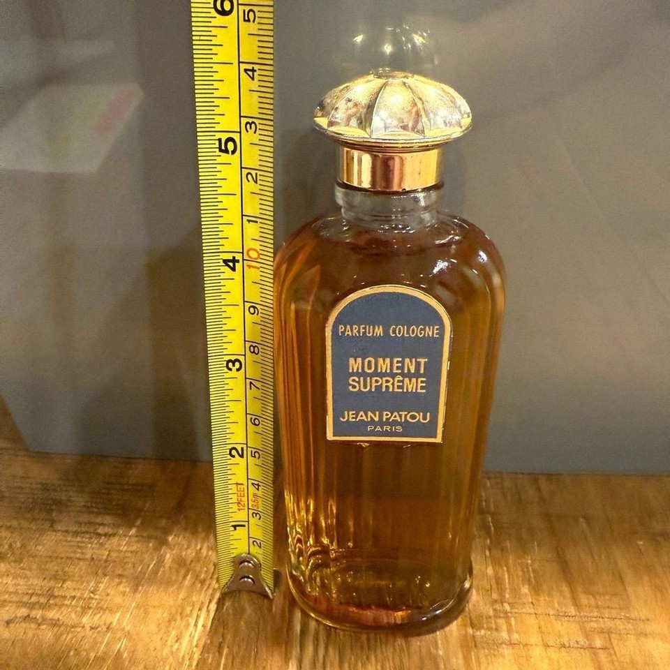 Moment Supreme by Jean Patou 3.6 oz / 108ml bottle Rare, hard to find, discontinued, deep vintage. Pre batch code, age is estimated at 1950's to 1960's formulation based on bottle style / research No box New, never used - stopper under bottle still in place as shown in photos Any questions, please ask! -Fragrances are stored in a temperature controlled, dark storage area. -Item pictured is the item you will receive. Please observe photos as they are a part of the description. -Item will ship securely via USPS Ground Advantage to US customers only. -No returns on this item due to it's fragile and collectible nature.