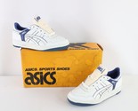 NOS Vintage 90s Asics Mens Size 6 Spell Out Outrage Lo Sneakers Shoes White Blue