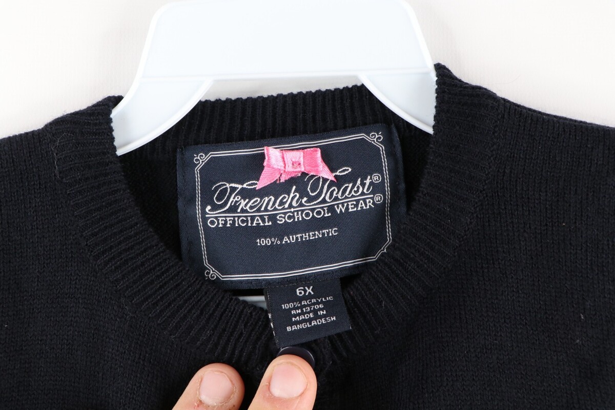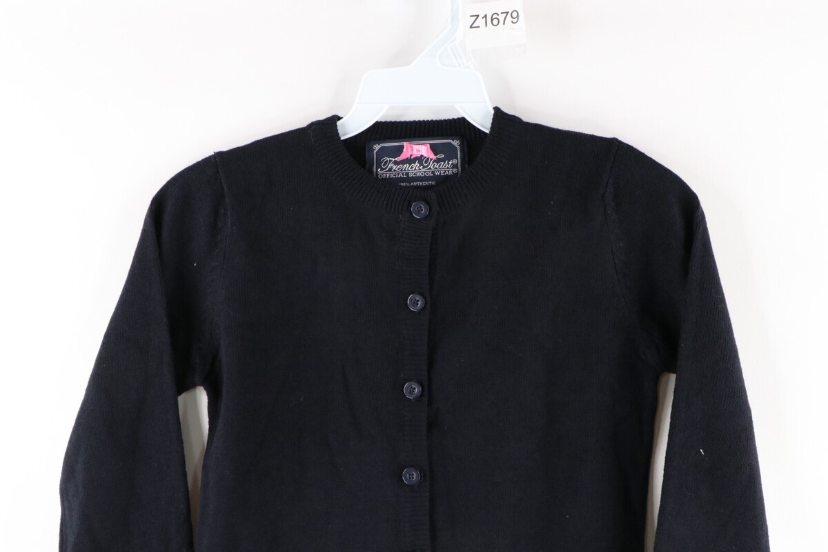 - NOS Vintage Childrens Size 6X School Uniform Button Knit Cardigan Sweater Navy