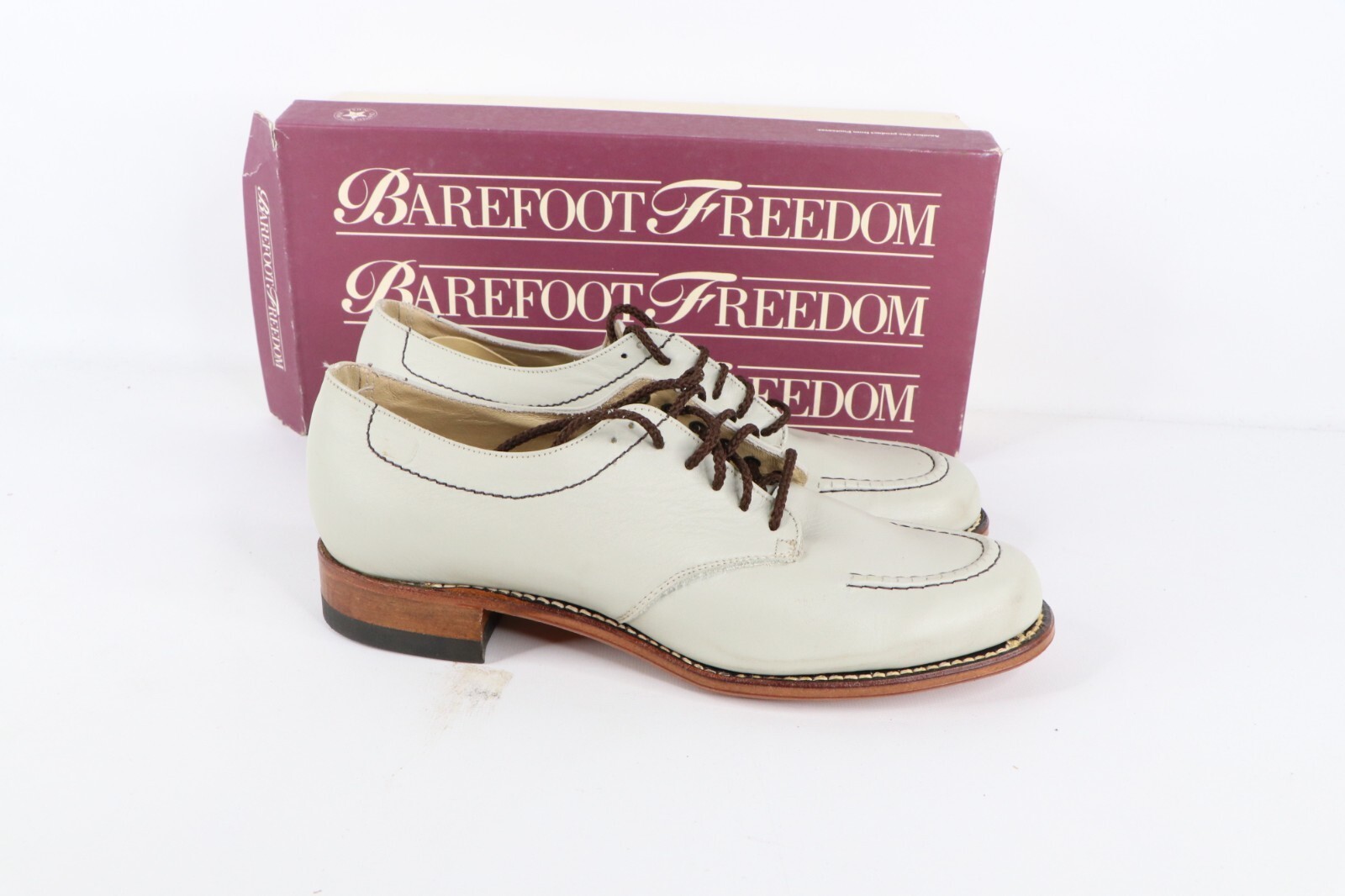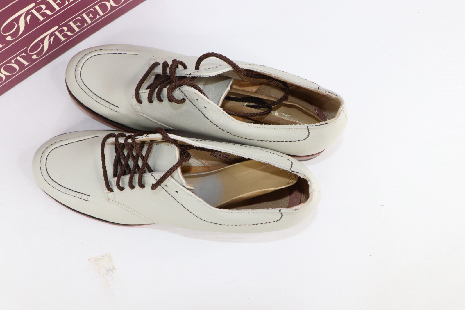 NOS Vtg 90s Streetwear Womens 7.5 A Leather Chunky Heel Shoes Winter White USA