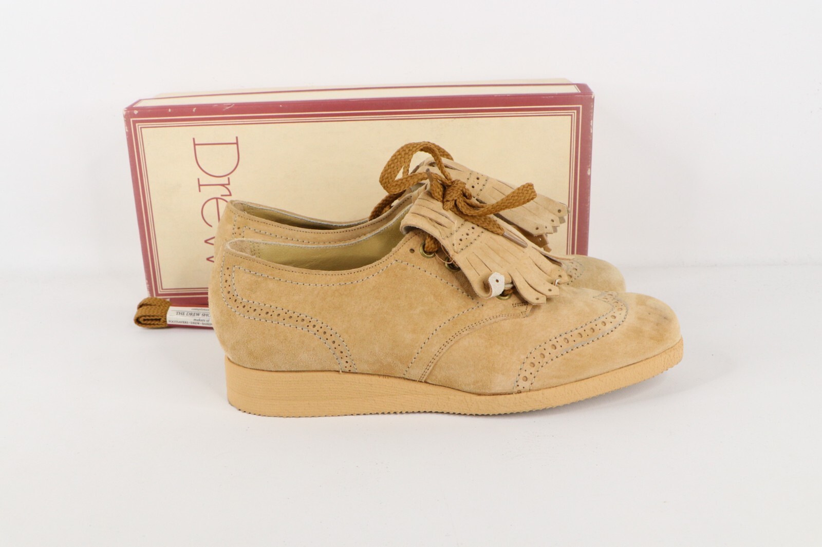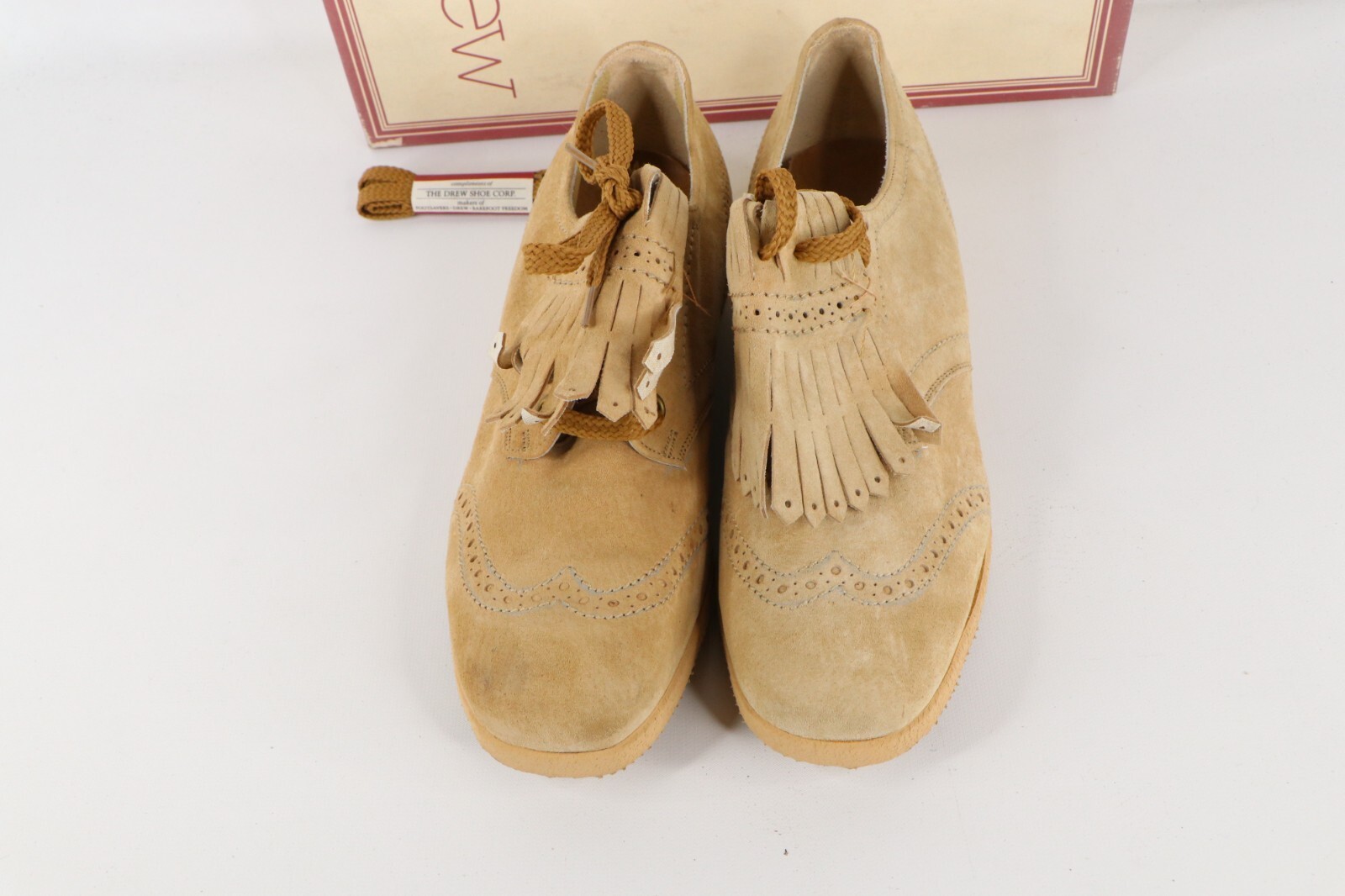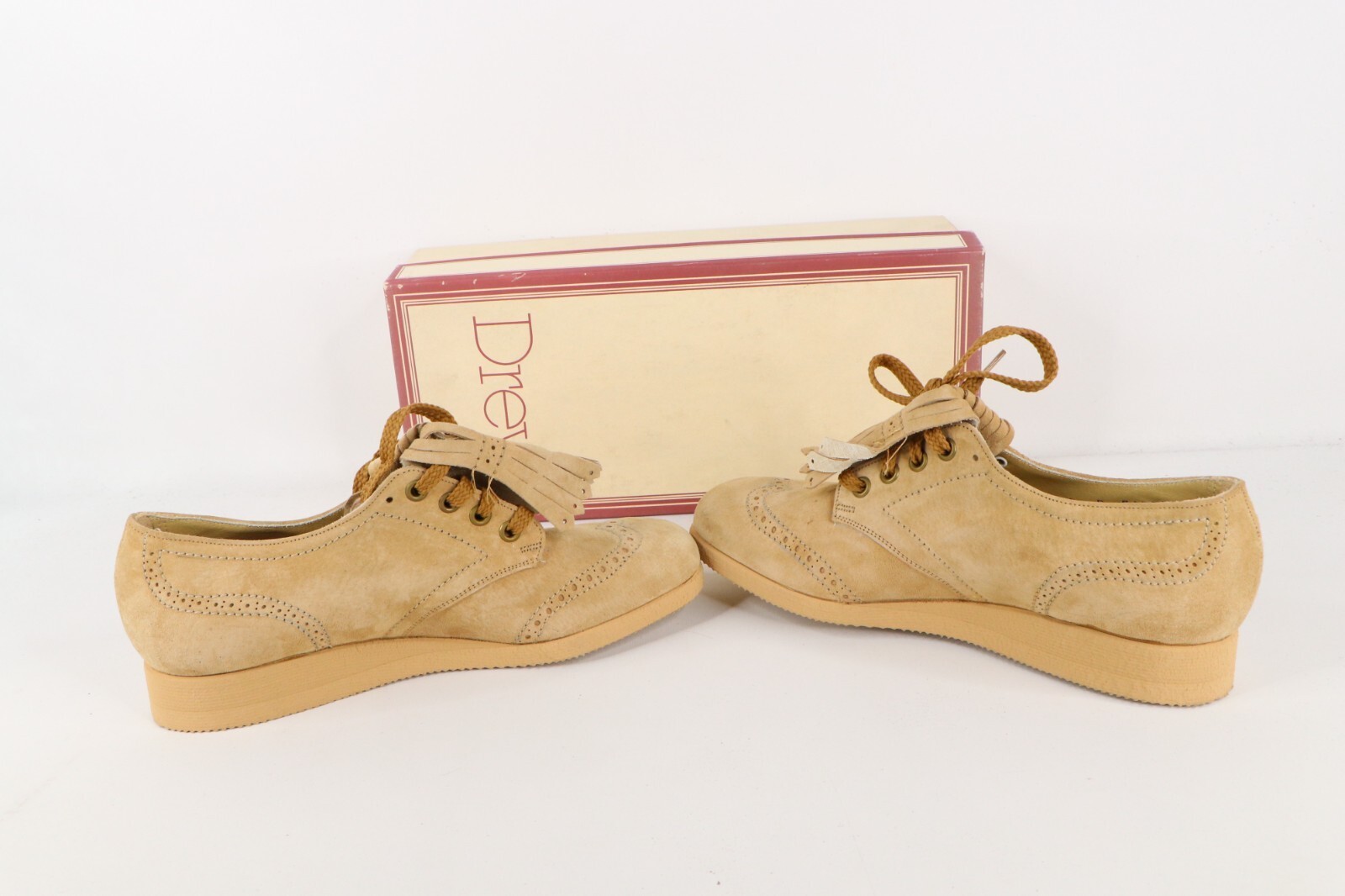 NOS Vtg 90s Streetwear Womens 7 B Platform Pigskin Suede Fringed Shoes Camel USA