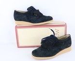 NOS Vtg 90s Streetwear Womens 9.5 Fringed Chunky Leather Platform Shoes Navy USA