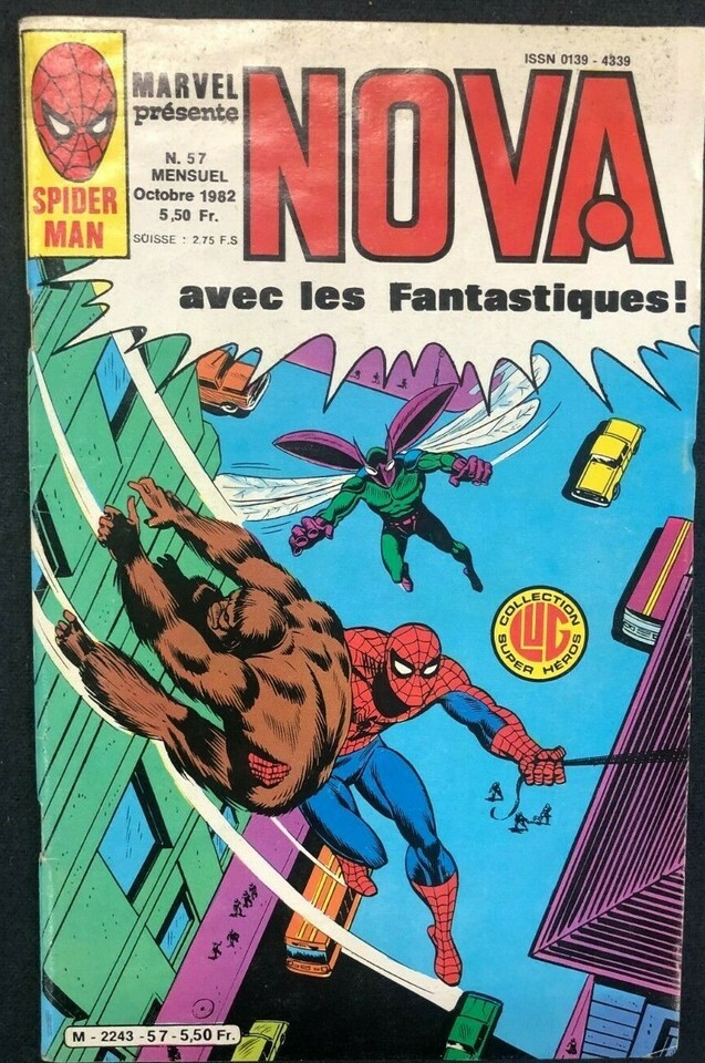 NOVA #57 French language digest comic book Marvel Comics (1982) France MY GRADING SYSTEM FOR COMICS I try to be fair and honest in my grading, and make every attempt to mention loose pages, stains, tears, binding damage, etc. Sometimes I find that a comic falls between two grades, in which case I will list it with a two-grade scale. NEAR MINT - MINT: I rarely use these grades, except when a comic is in truly exceptional condition. VERY FINE: very nice with virtually no major defects. FINE+: an even nicer copy, with minimal obvious defects. FINE: a nice copy, flat with minor creases; may have some spine stress, but no prominent defects. FINE-: better than VG+ but just a bit short of what I would consider Fine. VERY GOOD+: most of the comics I list fall into this grade; a typical read comic with obvious defects as noted; may have light back cover stains. VERY GOOD: fairly well-read with an accumulation of tears and defects as noted; may be heavily creased or spine-rolled; back cover stains may be present. GOOD: a complete but heavily-read comic; may be missing pieces of covers, loose covers, rolled spine or other noted damage. FAIR: a rough comic, with many defects including tears. missing pieces, water damage, spine wear, etc. POOR: no missing pages unless noted, but otherwise a pretty trashed comic; almost any and every damage may be present.