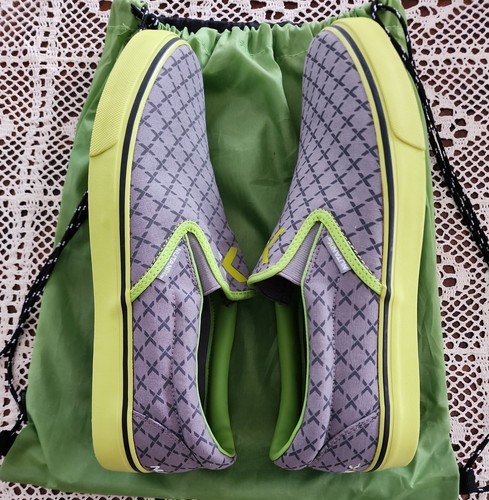 This Sale is for One (1) Pair of NUTANIX Brand Sneakers Marked on inside of shoe ~ Men's Size 11 ~ Women's Size 12.5 Length from heel to toe on the outsole is 12" Widest part of outsole 4" Lime Green Gray Casual ~ Canvas Sneakers Rubber outsole Shoes are low cut Slip on Matching drawstring bag is included with this sale Shoes are new ~ never worn Please view photos for a good description of these shoes Thank you!