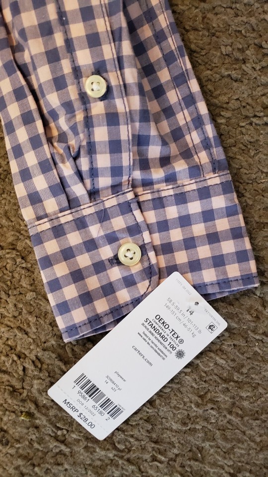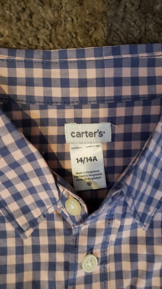 - NWT Carters Long Sleeve Button Dress Shirt Easter Pastel check purple L 12-14 a