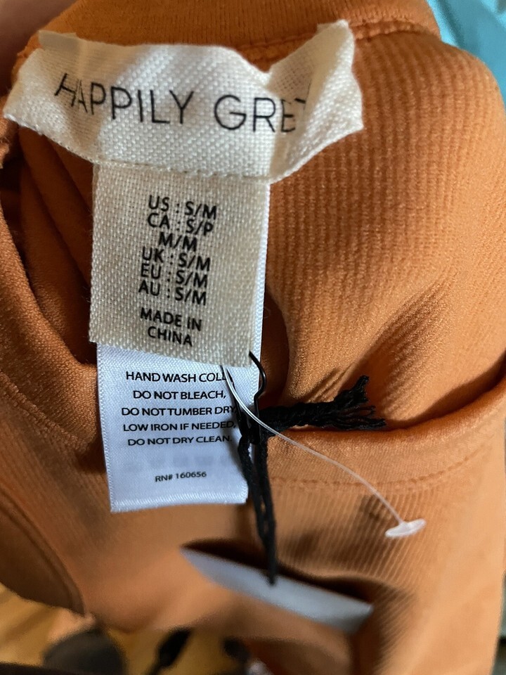 This Happily Grey blouse is a must-have addition to any wardrobe. The vibrant orange color is perfect for any occasion, and the size medium fits comfortably for everyday wear. The top is brand new with tags and has never been worn.