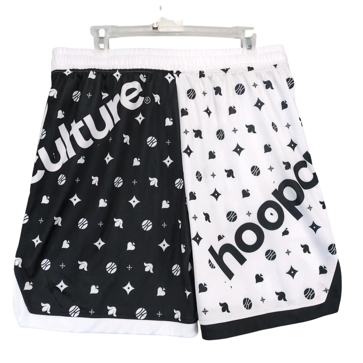 NWT Hoop Culture Men's L Basketball Shorts Black White Athletic Elastic Waist