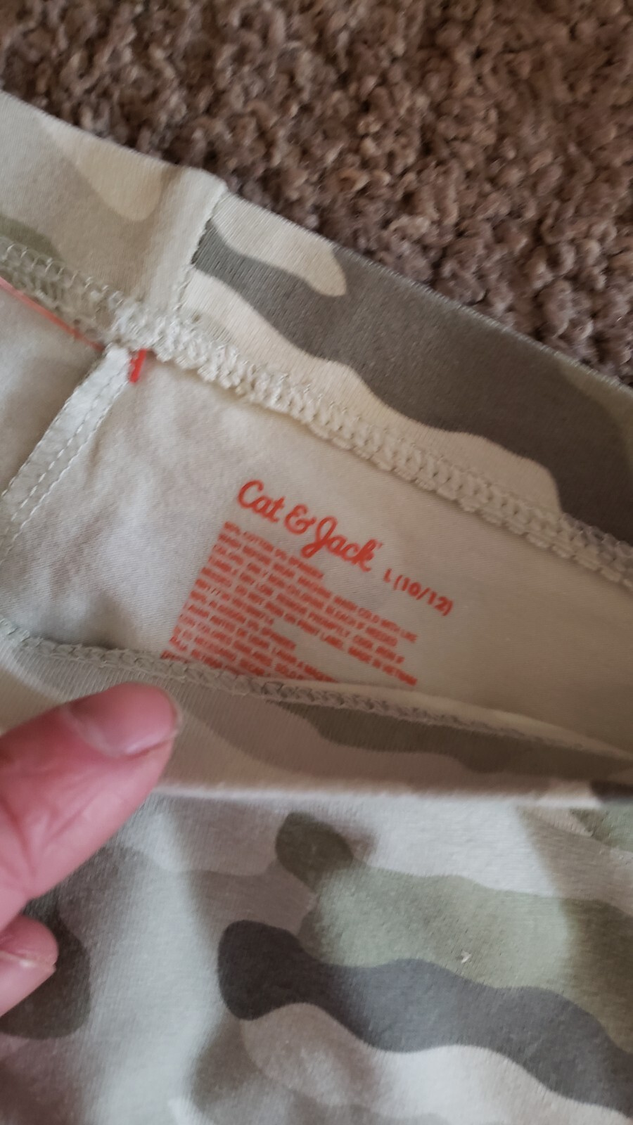 This is a great set of Leggings. This is labeled as girls - the black ones are Black size- 9-10. the Camo ones are Cat Jack - 10-12. Maybe buy the black ones for now and the camo for later? or maybe you have two girls these sizes?? Please look at dimensions and you will see.