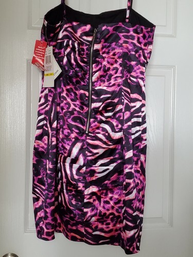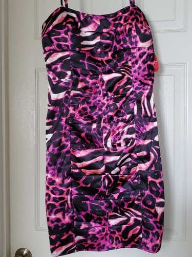New With Tags NW Collections Juniors Black / Fuchsia Cheetah Print Cocktail Satin Party Spaghetti Strap Dress. Above Knee. Tag Size: Medium Actual measurements: 31" chest, 30.5" length - Please go off measurements. SMOKE FREE HOME! SUPER FAST SHIPPING!