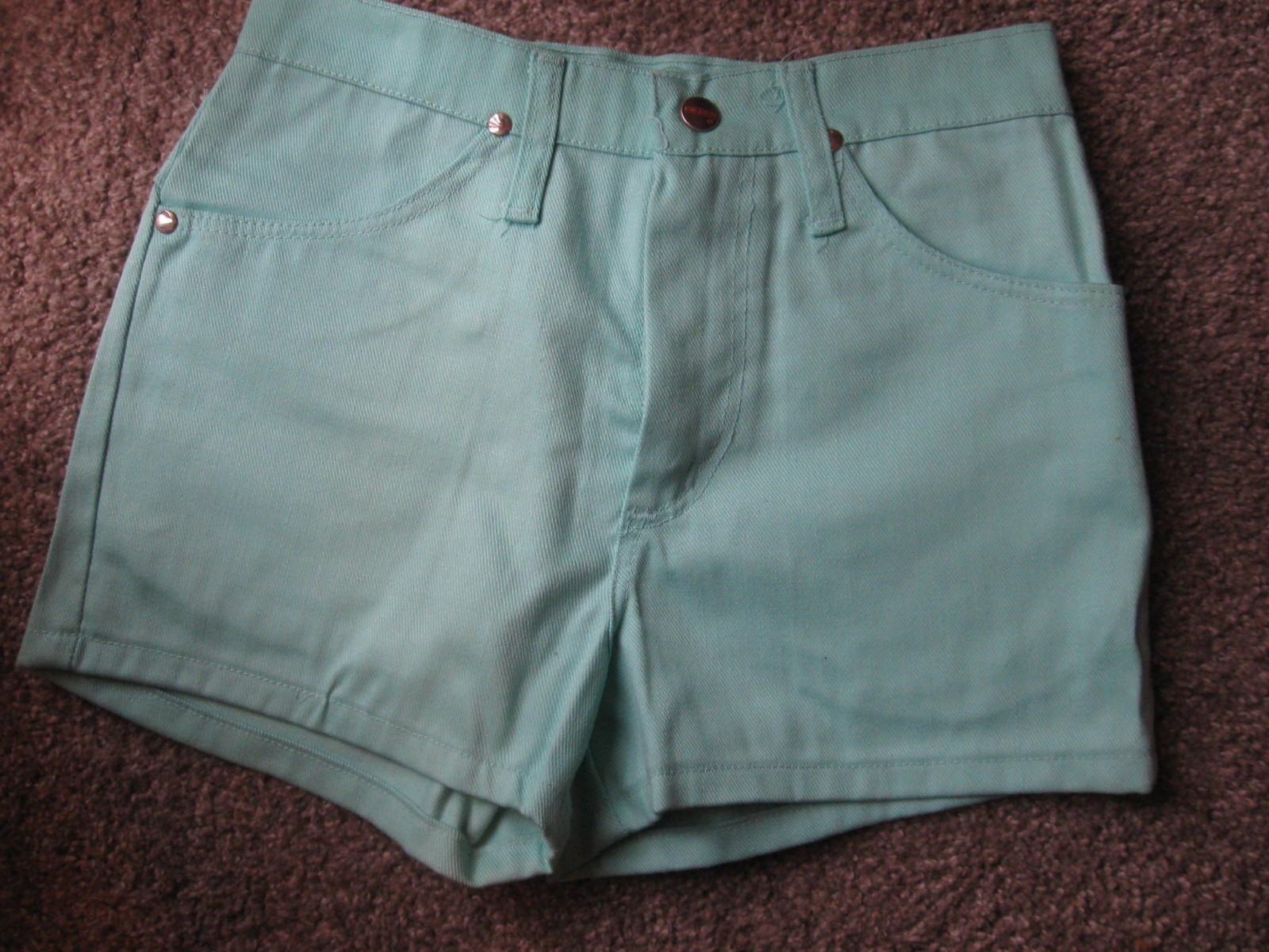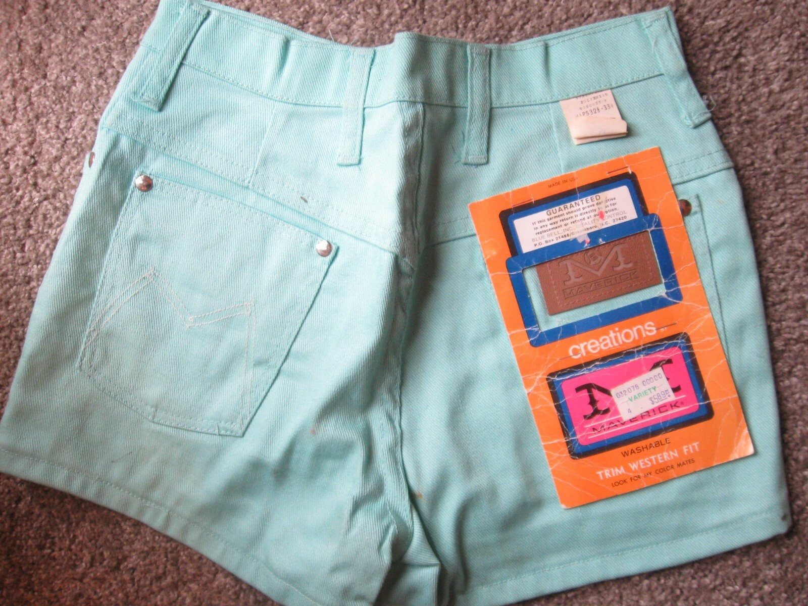NWT New Vintage Women's Maverick Western Short Shorts Teal Sz 6 / Juniors / 26" around waist These are brand new shorts still with tags from the 1970's!!!. I mean you cant find this kinda thing anymore!! There are front pockets on this. This is perfect for trendy Cowgirls!!! Cool brown Maverick Tag on them. Tag says these are 32-1/2 inch to 33-1/2 In Waist, but I measured them and they are 26 inches around the belt loops. SO I am not sure about this. they only measure out 2.5 inches from crotch to end-seam - so these babies are SUPER nice and short. 50% Cotton and 50% polyester - so they are nice and soft. I have other pairs of Maverick Women Junior Shorts. I will give a discount if you want multiples. FREE USA SHIP / Will ship international. Please ask questions.