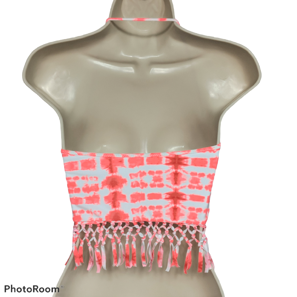 NWT Raisins Womens Bali Bandini Swimsuit Top Size Small Orange White Fringe