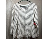 NWT St John's Bay Stripes Blouse 3/4 Sleeves V Neck French Terry Size XL