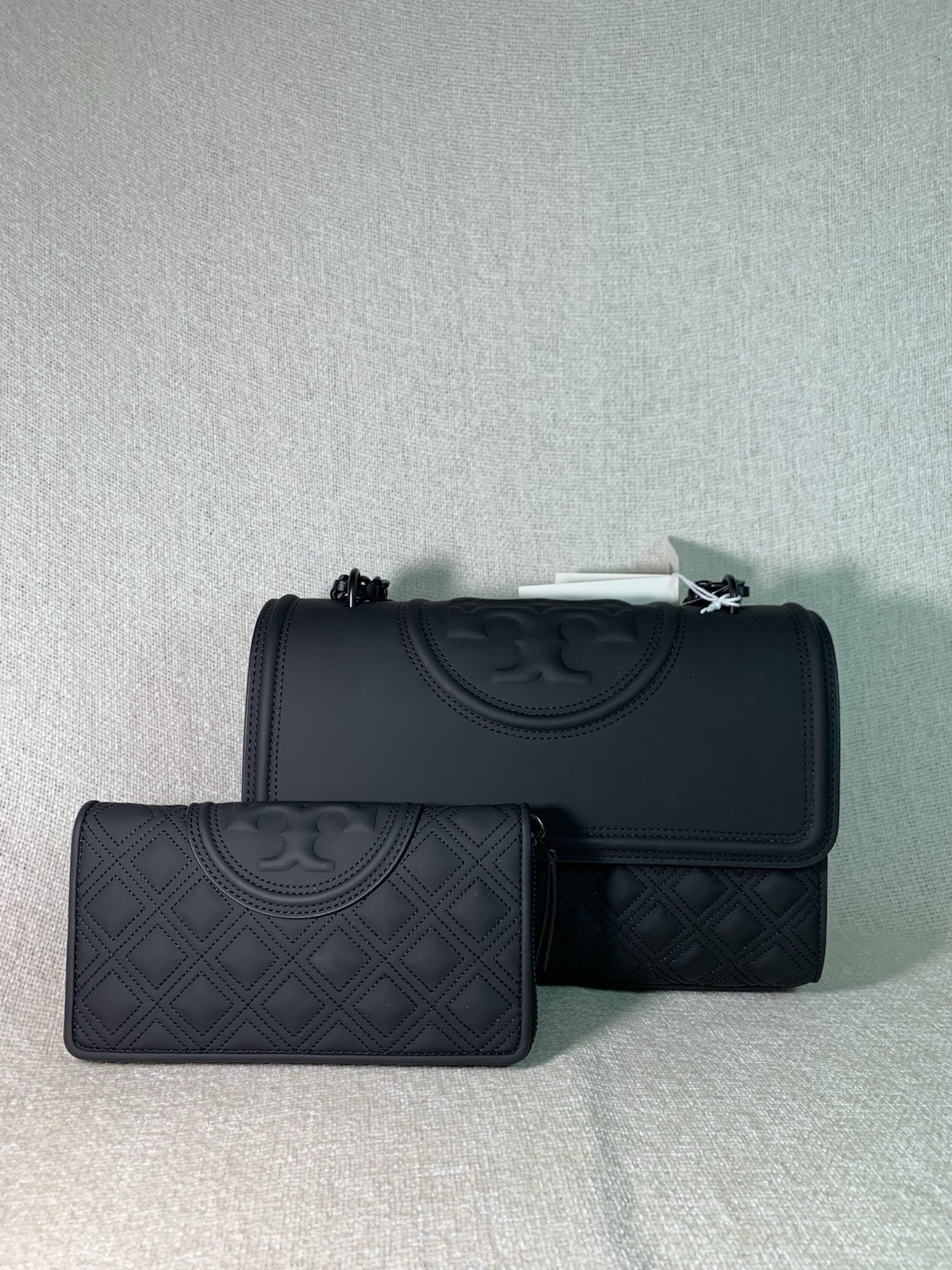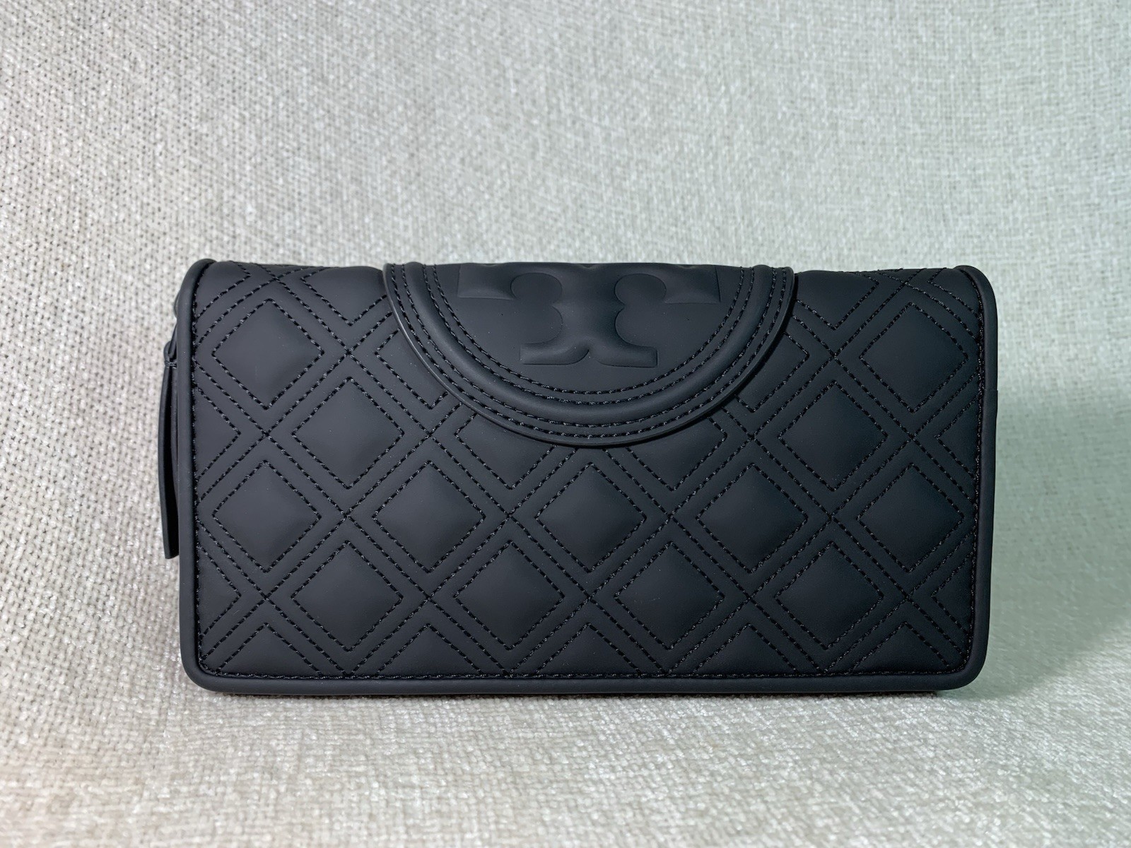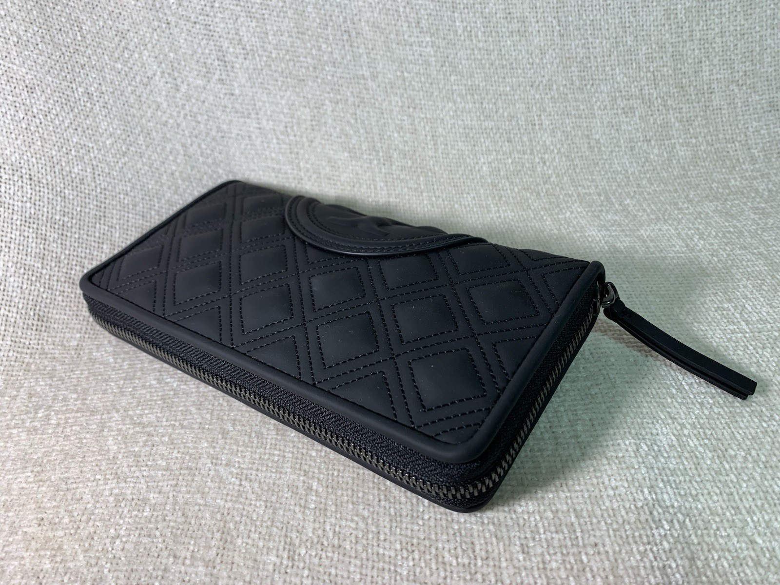 - NWT Tory Burch Matte Black Fleming Zip Continental Long Wallet $268