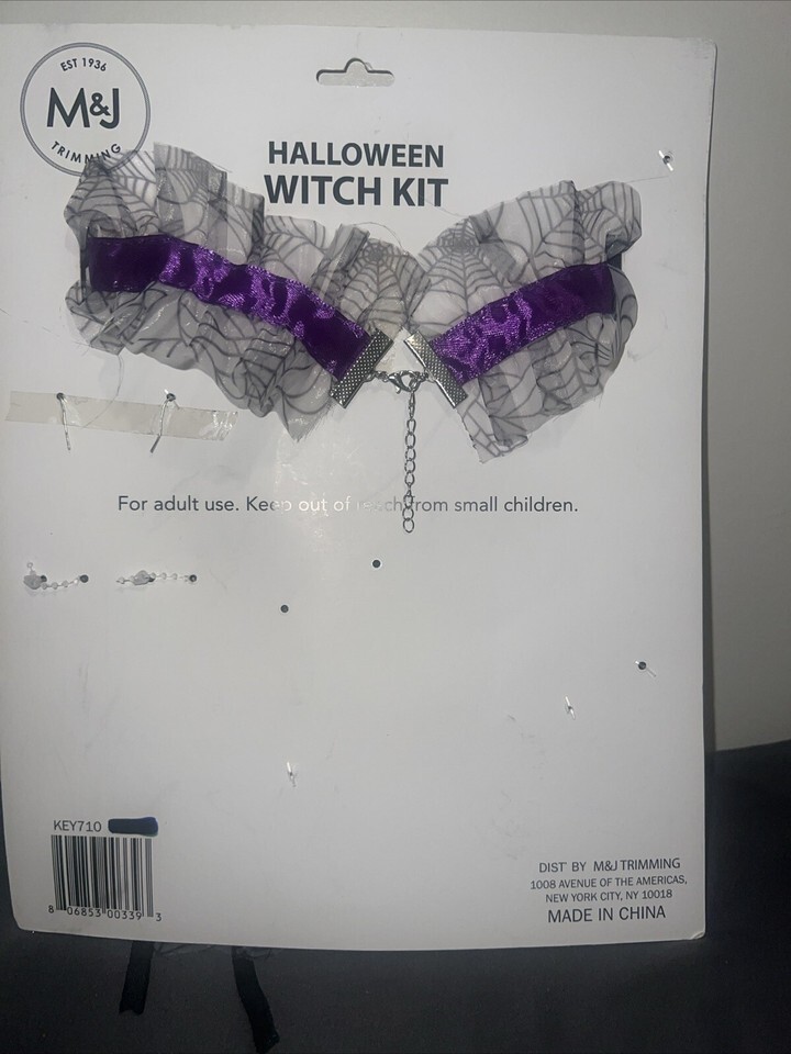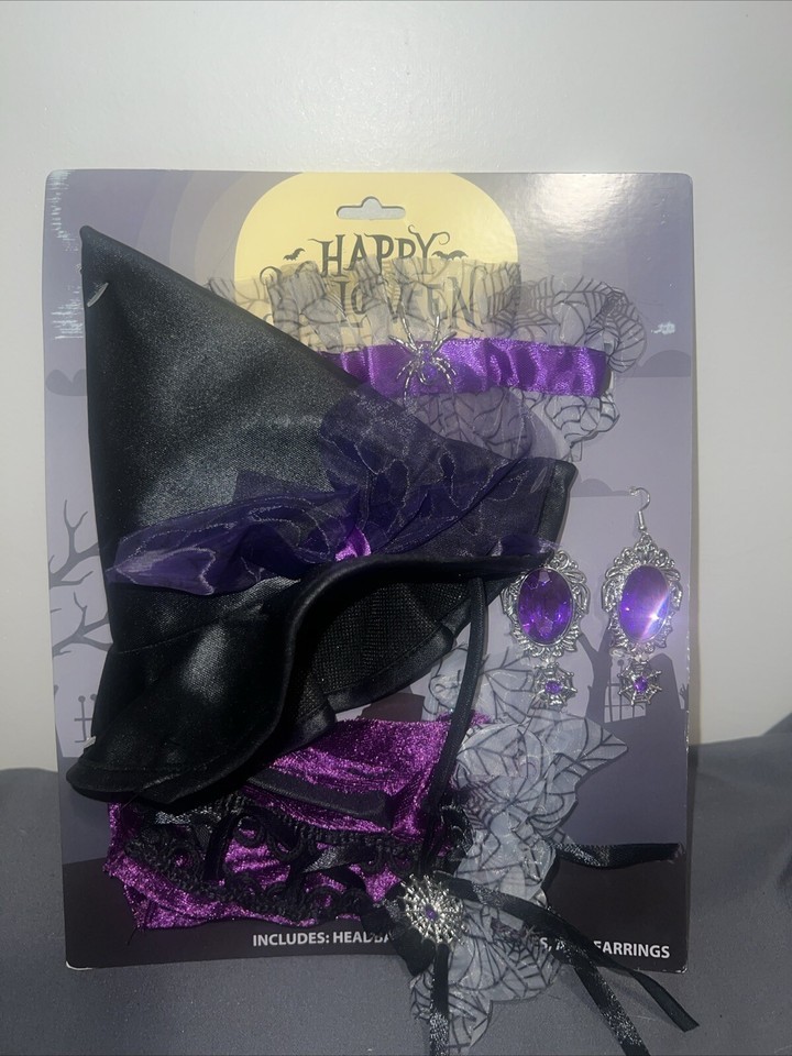 - NWT Womens Witch Halloween Accessory Kit Earrings Headband Choker Gloves Purple