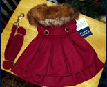 Brand New with Tags ~ Beautiful Burgundy Double Layered Pleated Harness Coat with Fur~Trimmed Collar by "Doggie Design" ** Retail: $39.95 + Tax ** All of my items come from a "Smoke Free Home" ** Comes with Free Toy + Free Gift ** Gorgeous, Gorgeous Very Warm Winter Coat!! ** Double Layered ~ Pleated on back adorned with (2) Black Buttons with Gold Tone Scallop Trim ** Heavy Duty Silver "D" Ring for matching leash ** Beautiful Brown Faux Fur Trim around the collar ** Heavy Duty Adjustable Wide Velcro Closure for under the chest/tummy neck ** This can be worn over an elegant dress or sweater ** Inside is fully lined with Satin **Size: (Small) 12"-16 (Chest) ~ Length is 12" from base of neck to base of tail (Med) 15" -19" (Chest) ~ Length is 13" from base of neck to base of tail ** If you have any questions about this item, Please let me know I will get back with you as soon as I can. ** Thank~you for looking Many Blessings to you!!