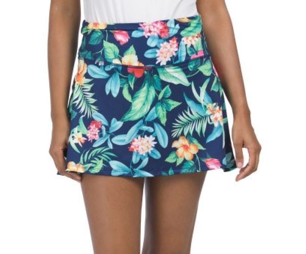 - NWT X by GOTTEX Navy Botanical Golf Tennis Pickleball Knit Godet Skort M & L