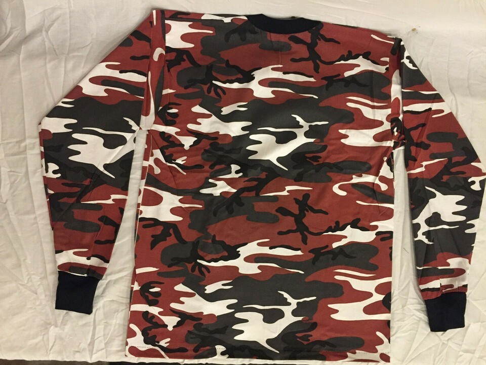 NWT's Red & White BDU Camouflage Long Sleeve T- Shirt 100% Cotton MEDIUM