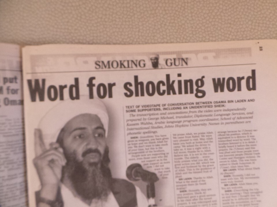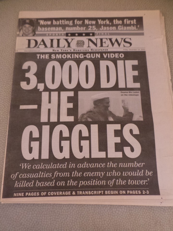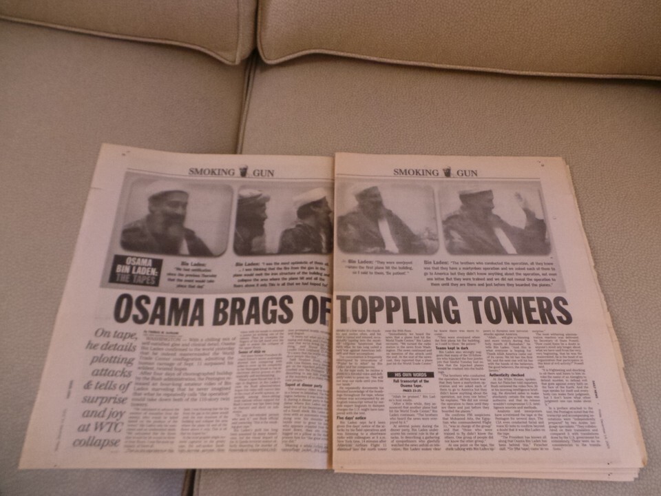 NY Daily News Smoking Gun Video Tape Osama Bin Laden 3000 die Dec 14, 2001 VG